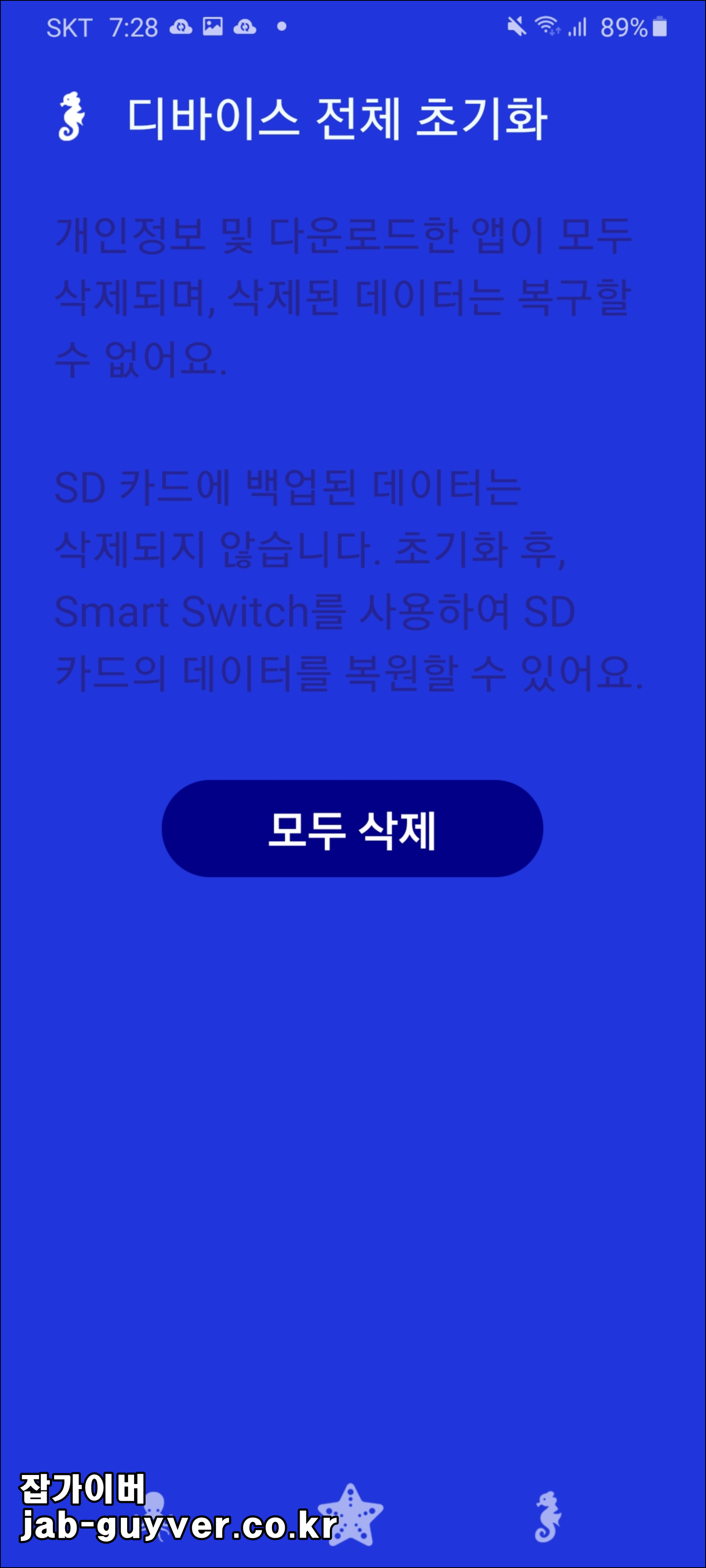 - 디바이스 전체 초기화 (데이터 포함 전체 삭제)