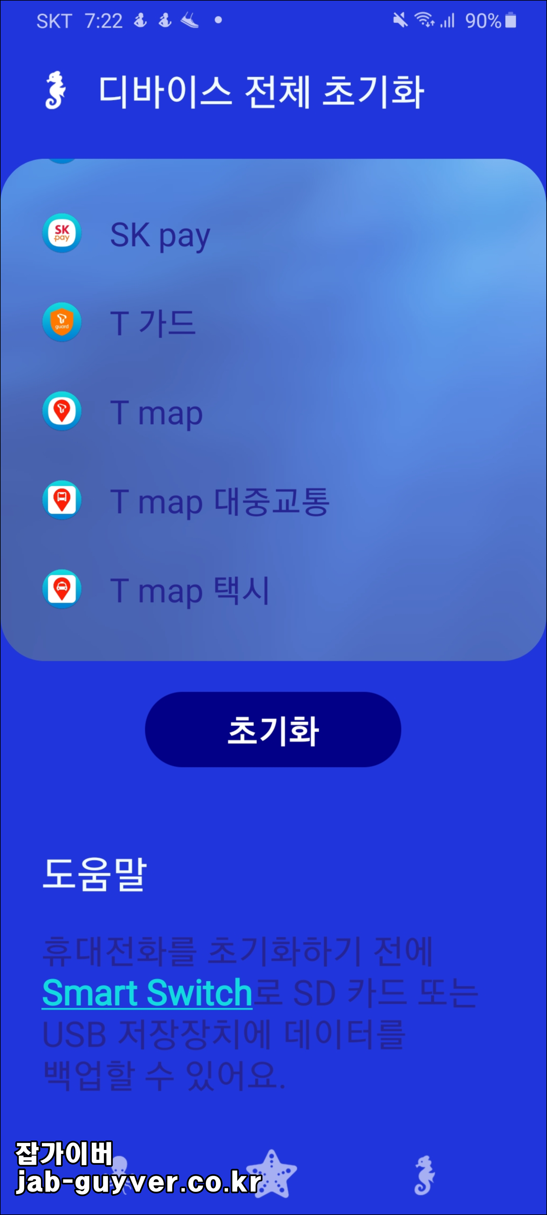 참고로 갤럭시 S/노트/Z/A/M/탭 계열에도 그대로 적용할 수 모두 정리하였으며 중간에 구글락(FRP) 때문에 설정 시 막히는 경우도 많아서, 그 부분도 함께 참고하여 초기화 후 중고로 판매하거나 유심변경 스마트스위치를 통한 백업 및 복구방법등을 참고하세요