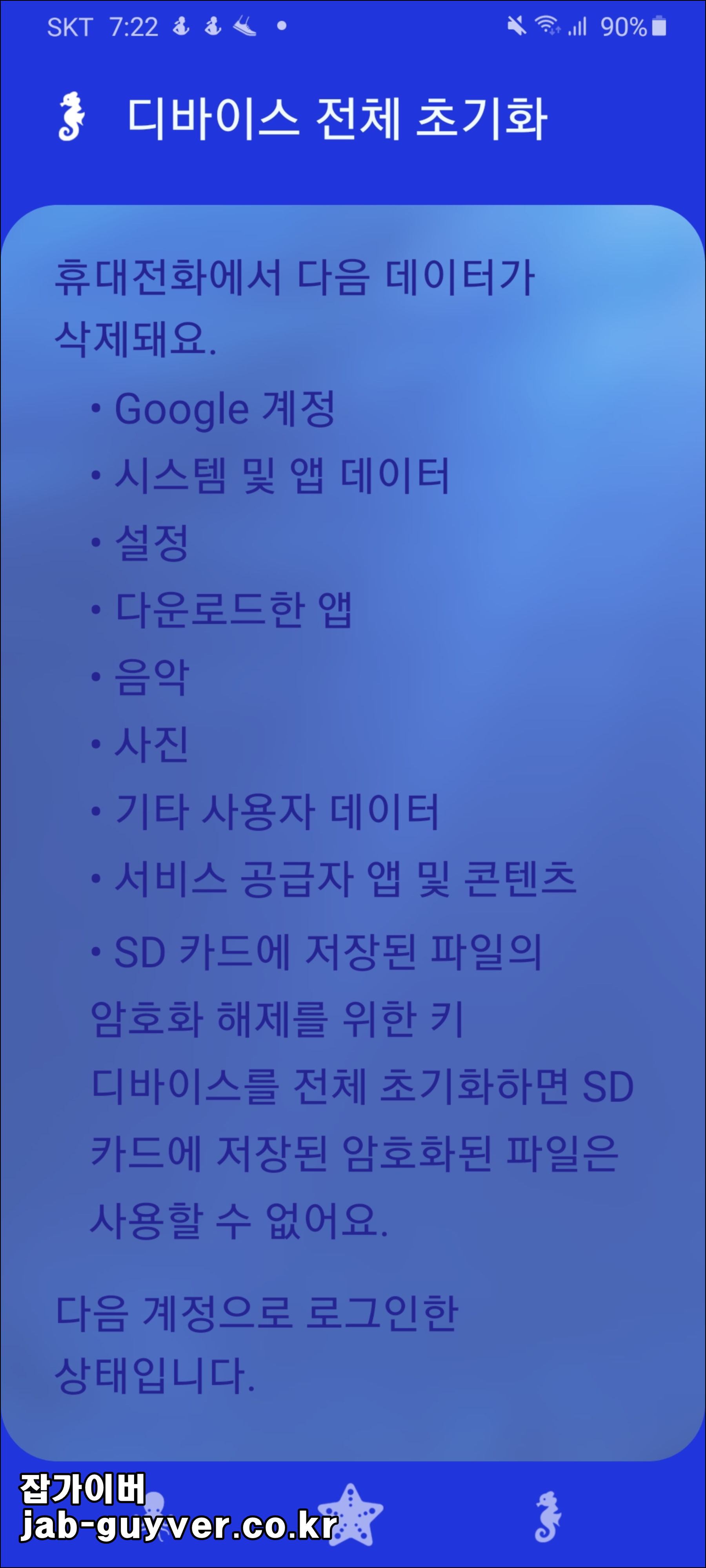 이 기기는 재설정되었습니다. 구글 계정 잠김 유심 변경 개발자옵션 핸드폰을 사용하면서 공장초기화를 진행해 모든 데이터를 삭제 한 다음 구글 계정에 로그인하고자 하는데 갑자기 구글 계정