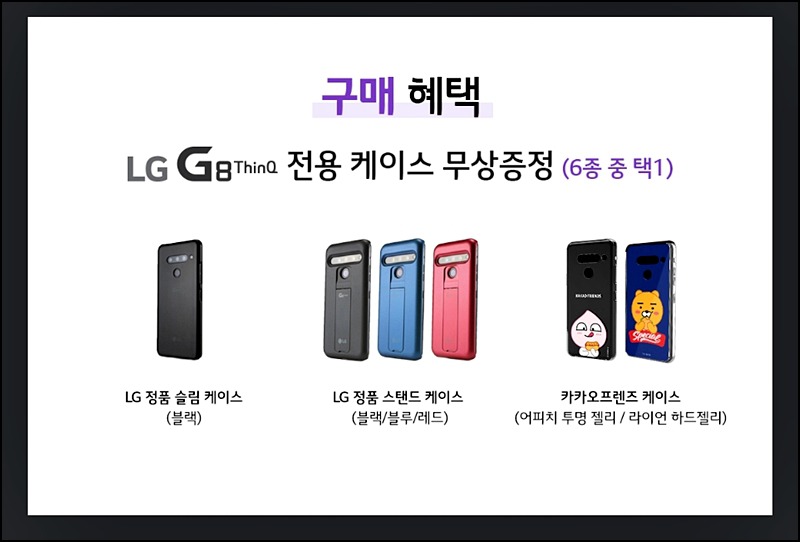 - LG G8 사전예약 기간 : 2019년 3월 15일 ~ 3월 21일