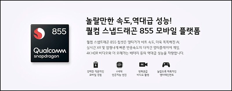 LG G8은 퀄컴 스냅드래곤 855 모바일 플랫폼을 장착되어 갤럭시 노트9의 스냅드래곤 845보다 더 최신 스펙이 장착되었으며 더욱 똑똑해진 AI 덕분에 실시간 XR 및 빠른 반응속도 그리고 배터리 최적화 등으러 더 오래된 지속력을 자랑합니다.