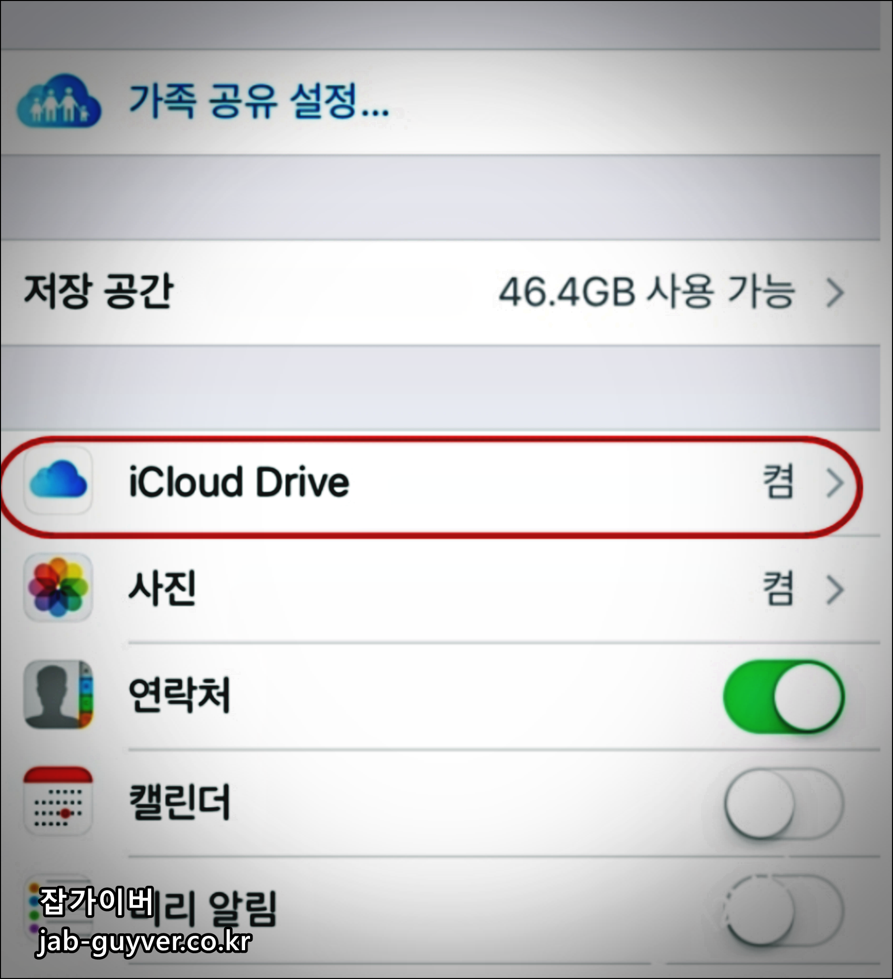 이후 하단으로 쭈욱 내리면 "iCloud"를 선택합니다.