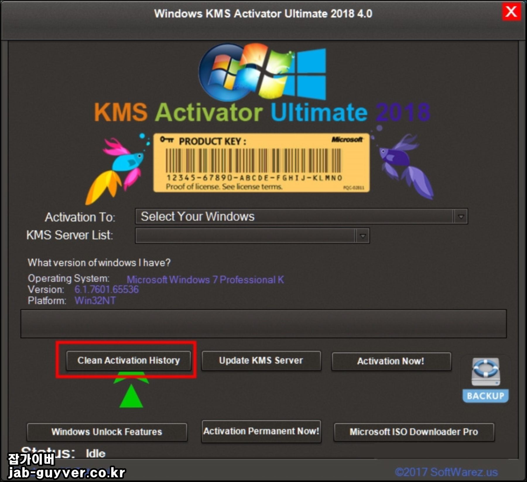 왼쪽의 Clean Activatio History를 눌러 기존의 인증 내역이 있다면 자동으로 삭제해 줍니다.