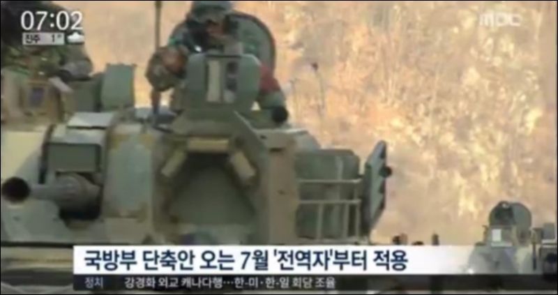 국방부는 병사 군대 복무기간을 육군 기준으로 21개월의 군복무기간을 18개월로 줄인다고 발표했으며 국방개혁기본계호기를 4월까지 완성하겠다고 공지한바 있습니다.
