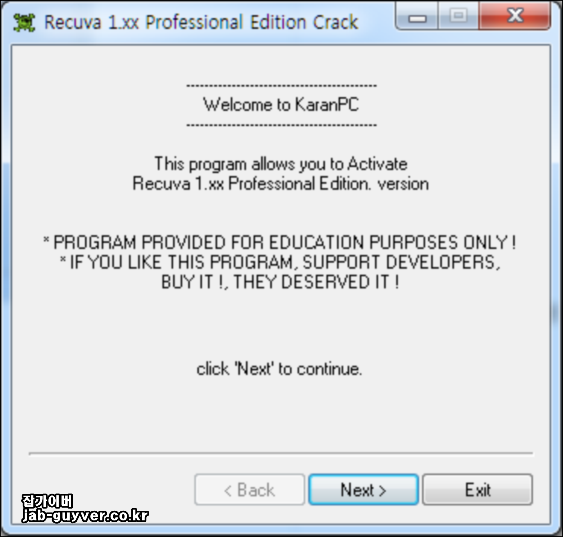 레쿠바 크랙 파일을 더블클릭하여 설치합니다.
