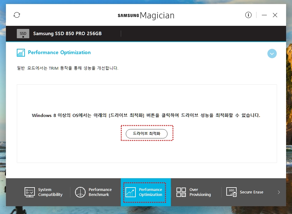 - 성능 최적화 — TRIM 명령을 사용하여 선택한 Samsung SSD의 성능 최적화