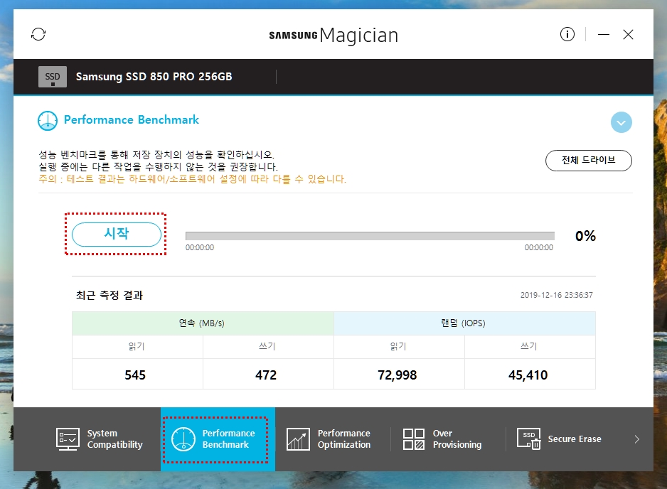 - 성능 벤치마크 — 선택한 드라이브의 성능을 테스트