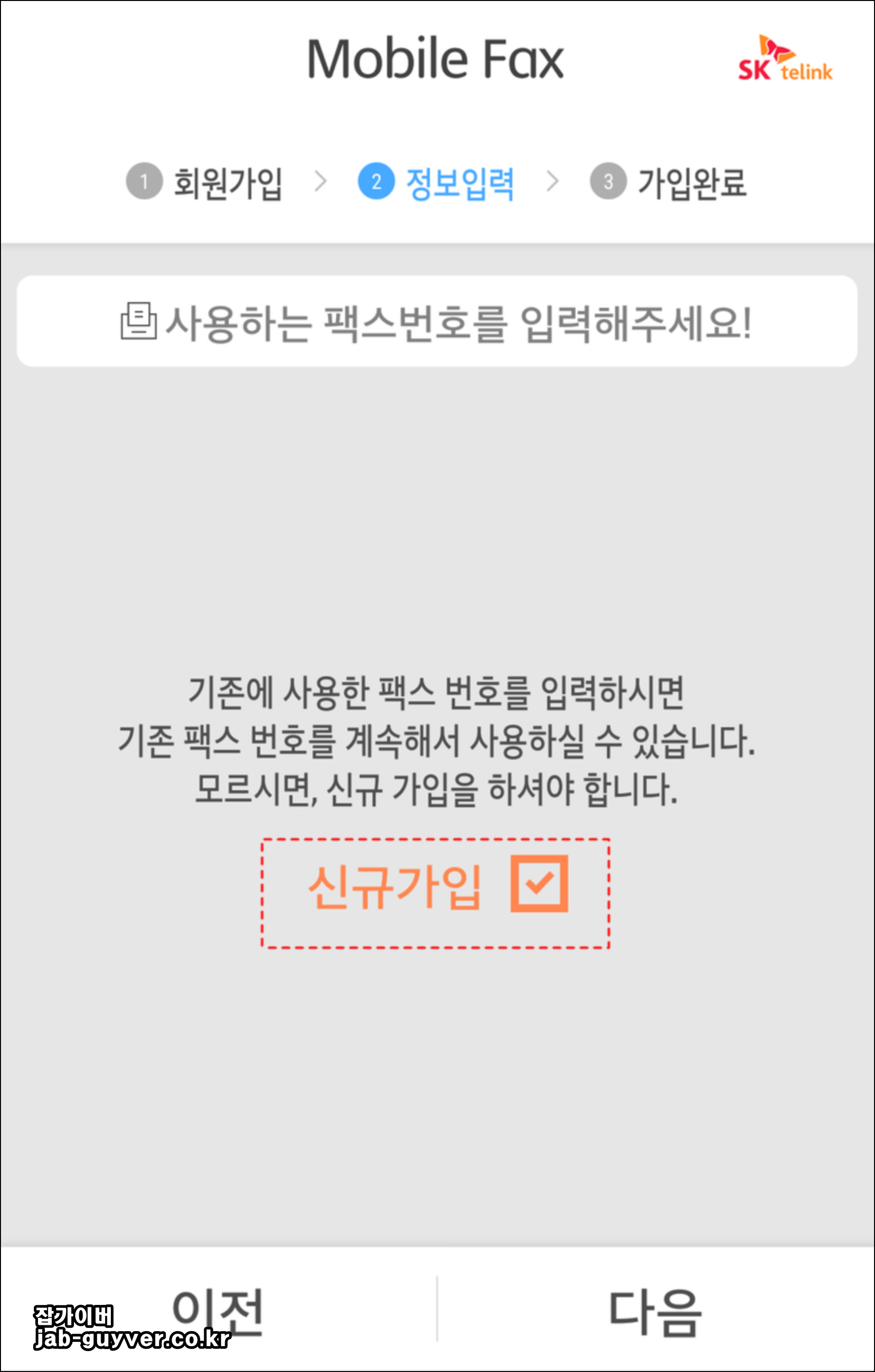 처음 가입하는 것이기에 모바일팩스 신규가입으로 진행합니다.