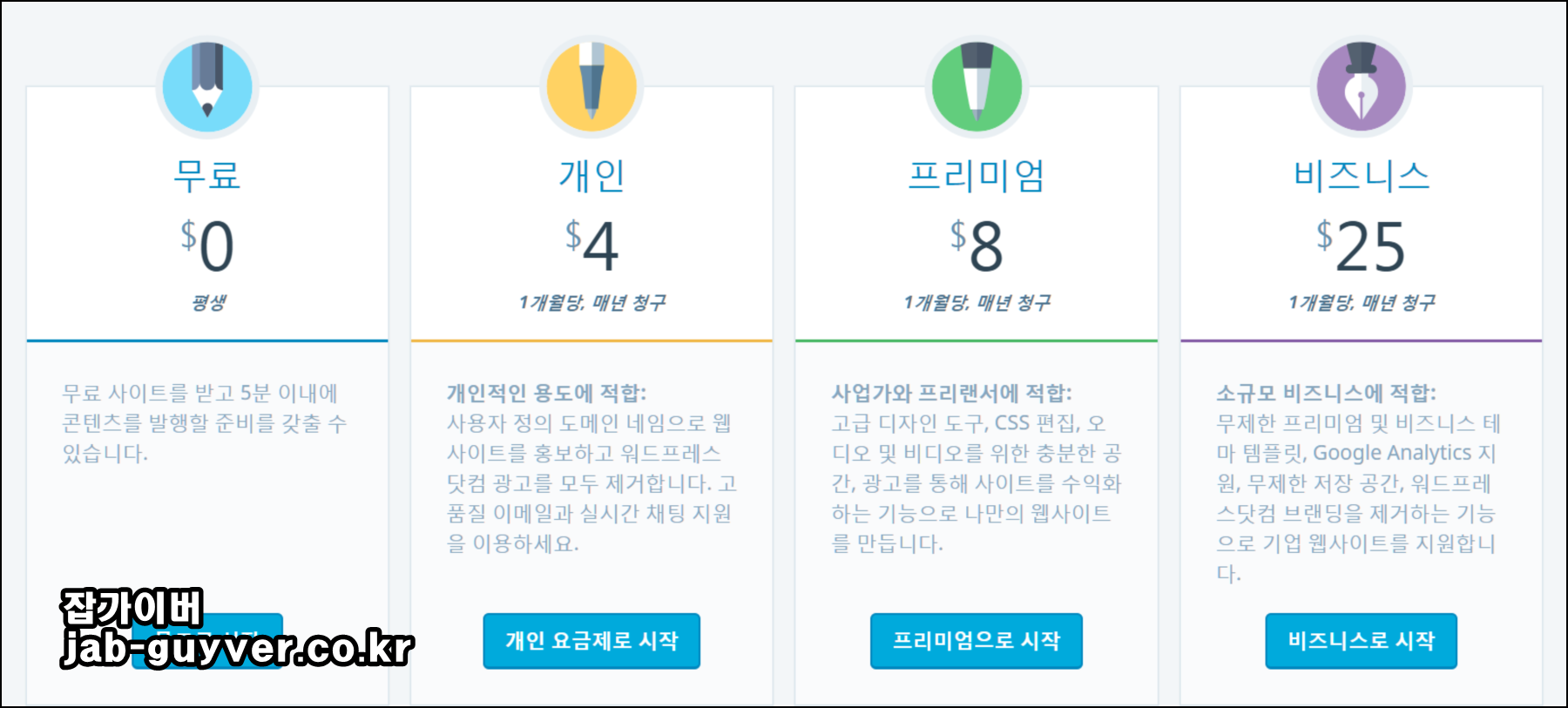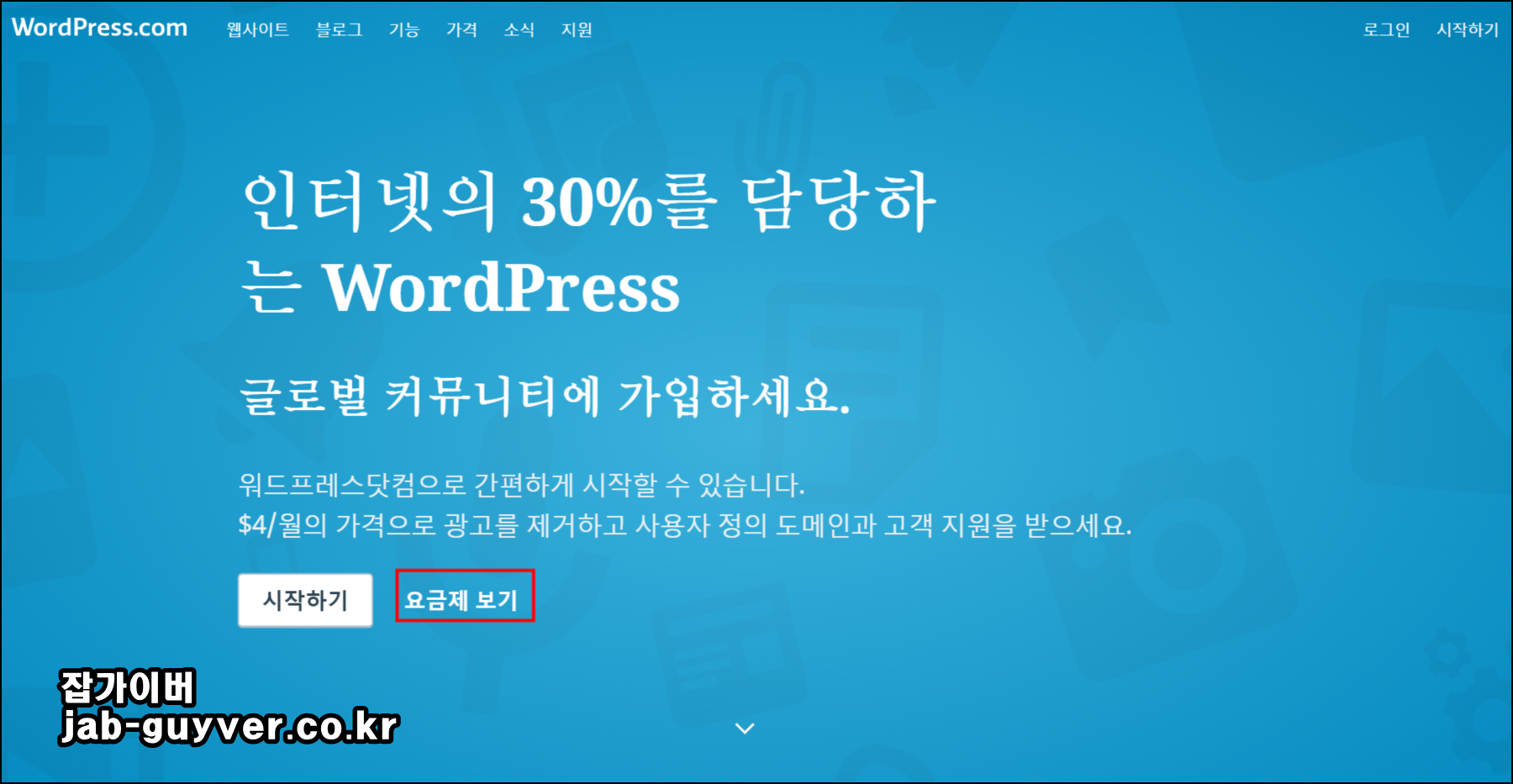 전 세계 인터넷의 30%를 담당한다는 워드프레스는 요금제가 있습니다.