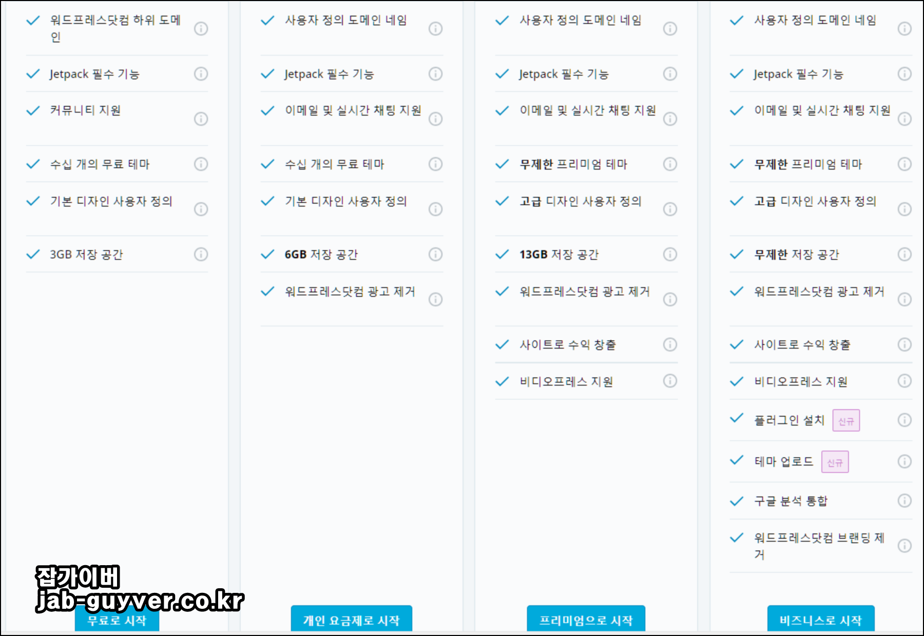 워드프레스 가입형 설치형 요금제 및 특징 장점 단점 - 모든것