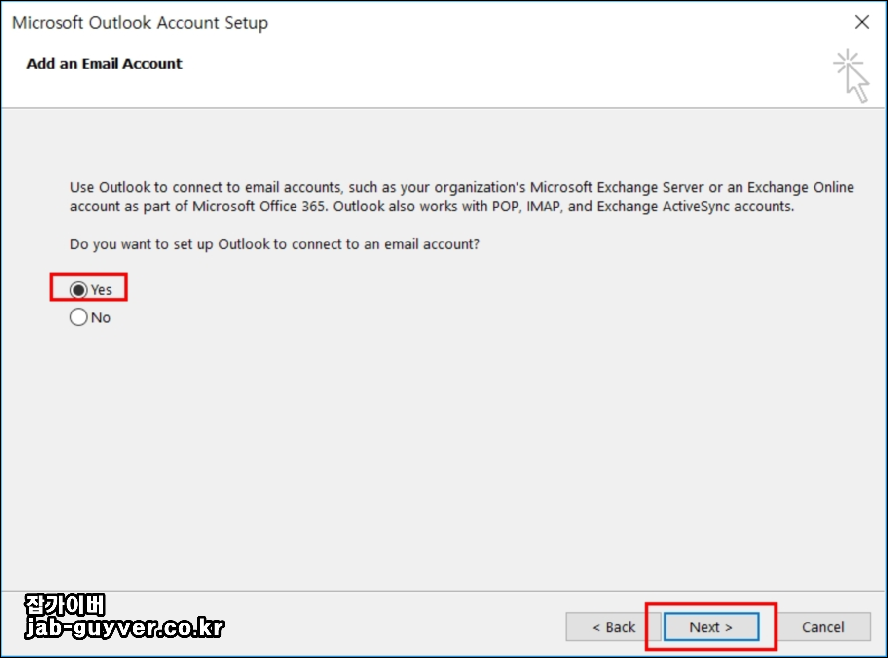 아웃룩 지메일 연동 및 설정 - 오피스 2019 부터 2013 - 노랗IT월드