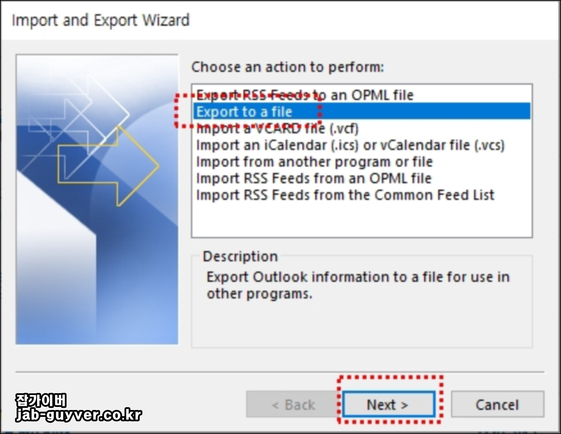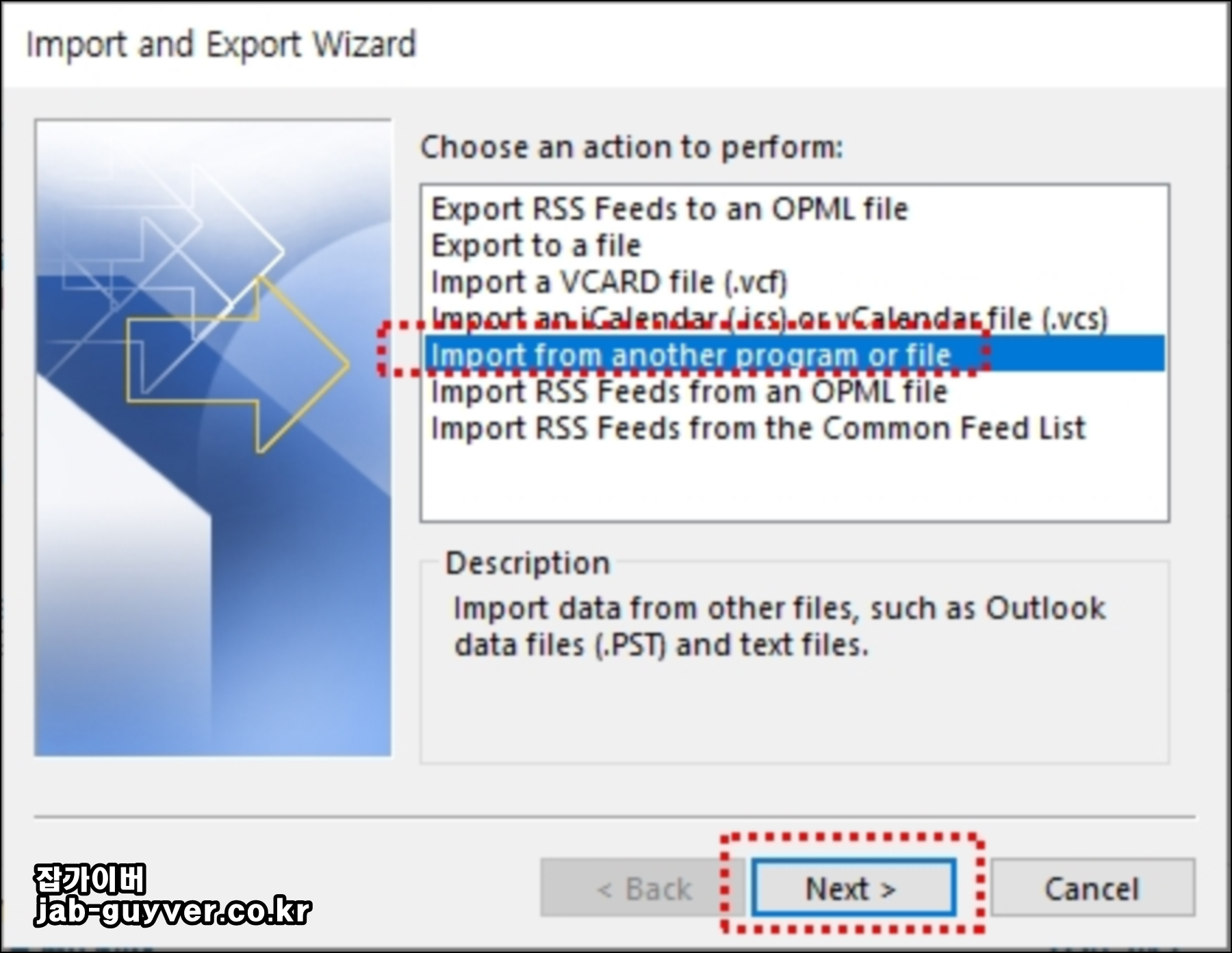아웃룩 메일 백업 - Outlook 내보내기 가져오기 - 노랗IT월드