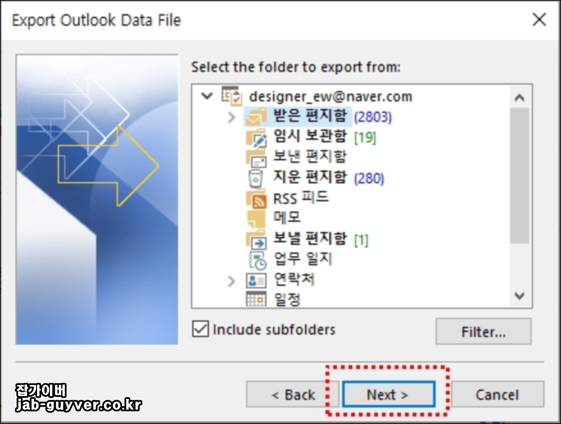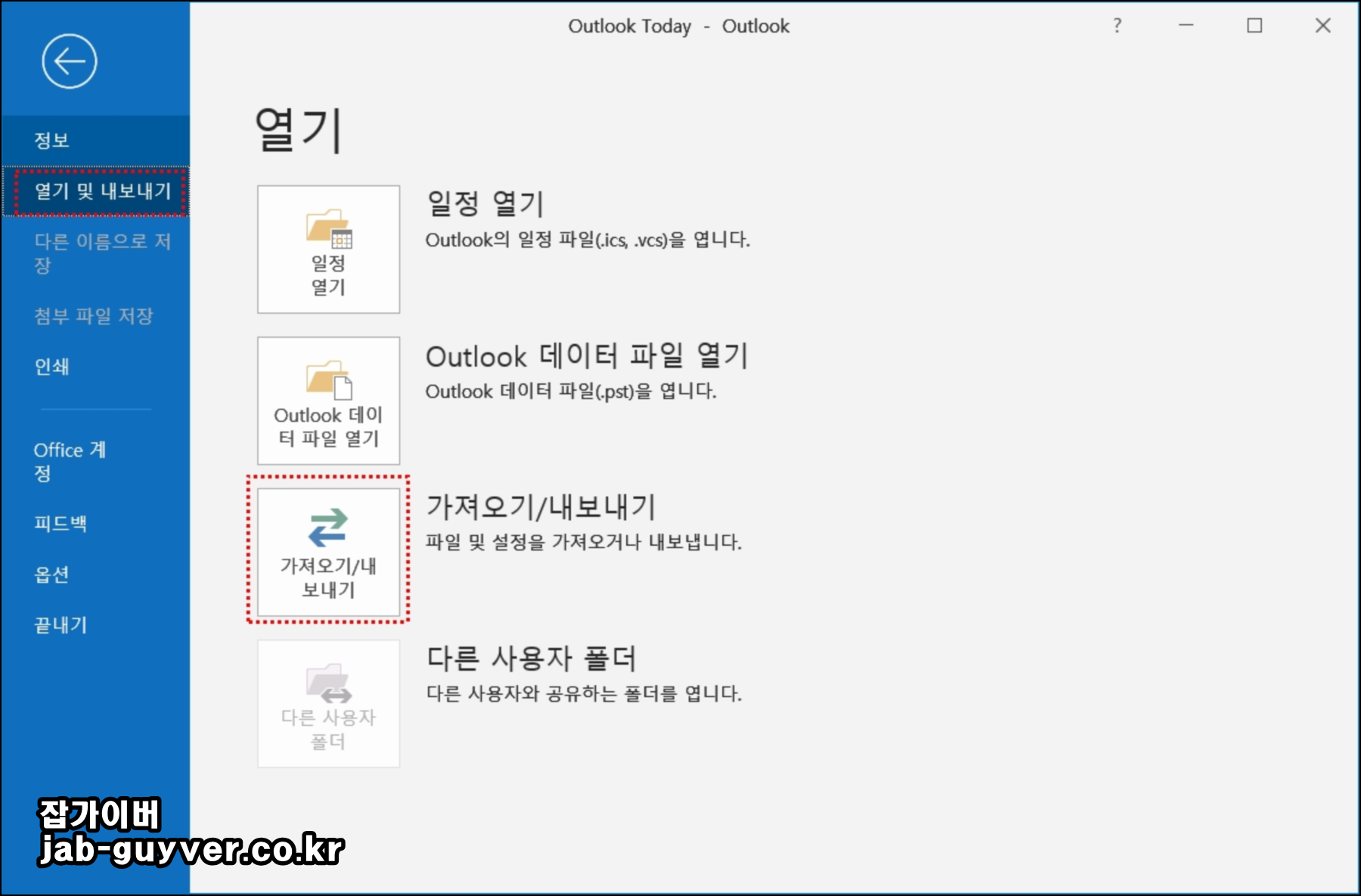 아웃룩 메일 백업 - Outlook 내보내기 가져오기 - 노랗IT월드
