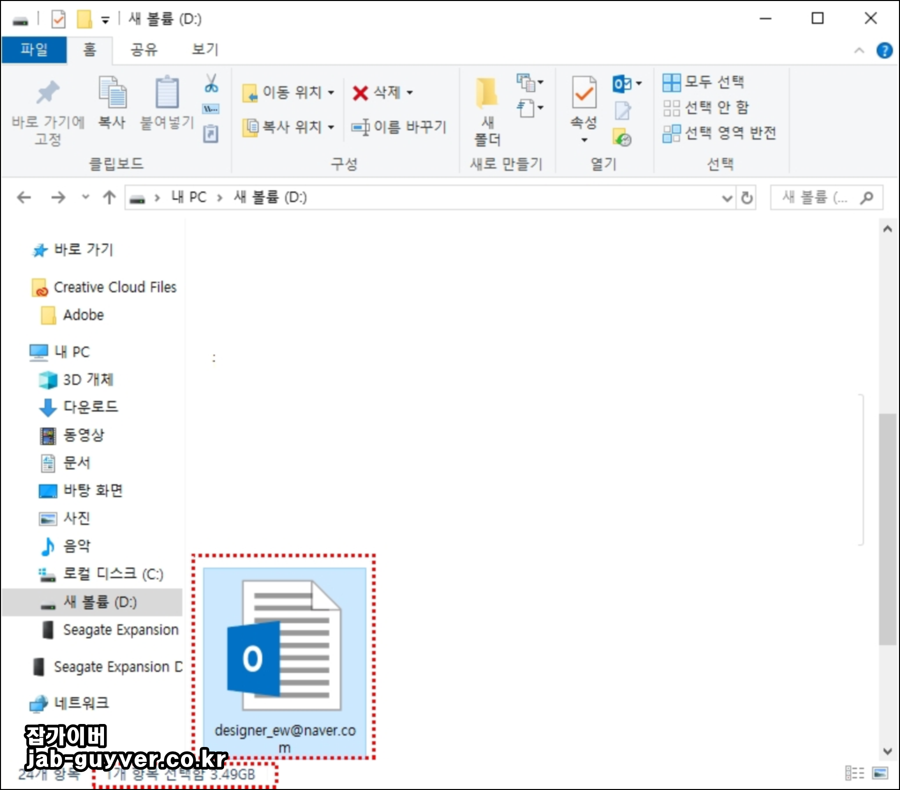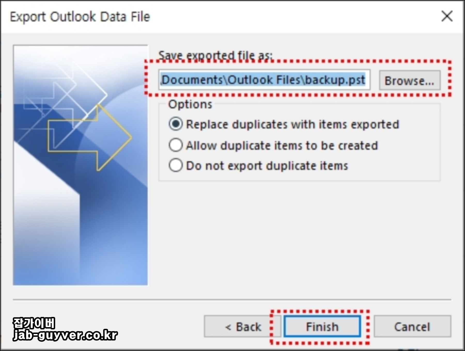 저장 위치만 잘 정해두면 아웃룩 메일 백업(PST)은 끝입니다. 이 파일이 “복구의 재료”가 됩니다.
