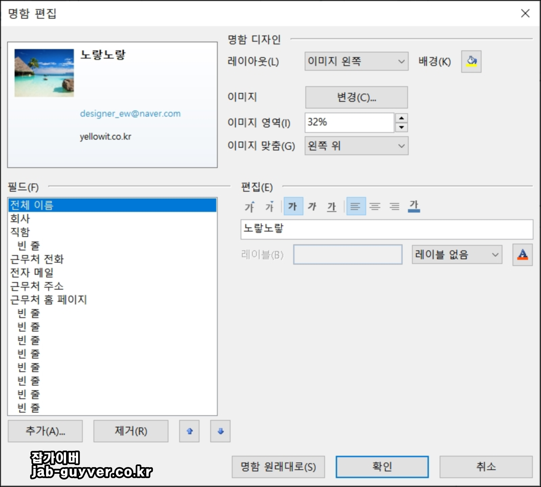 아웃룩 서명 등록 인사말 명함정보 입력방법 - 노랗IT월드