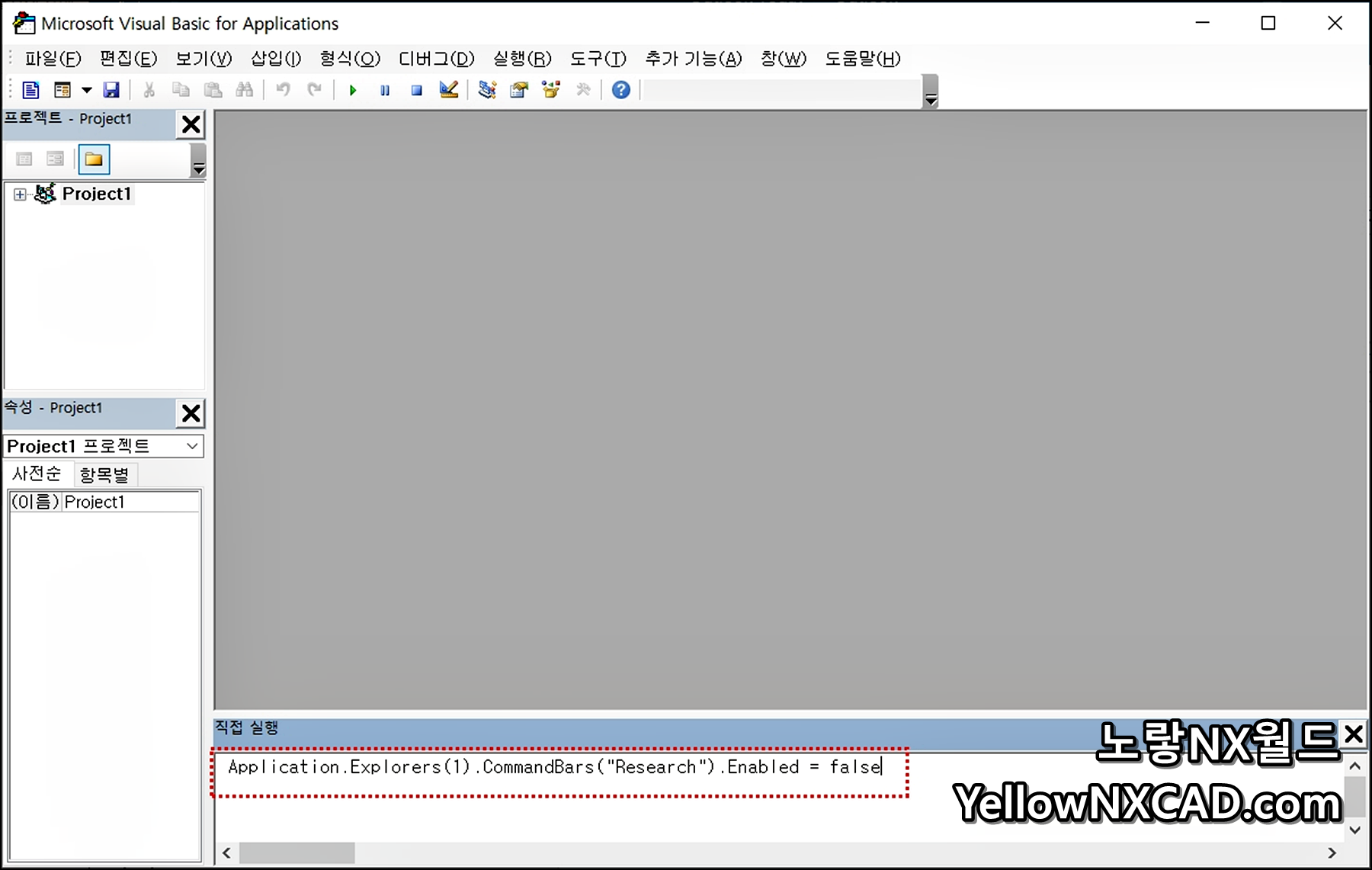 Alt + F11키를 눌러 Microsoft Visual Basic For Application을 실행합니다.