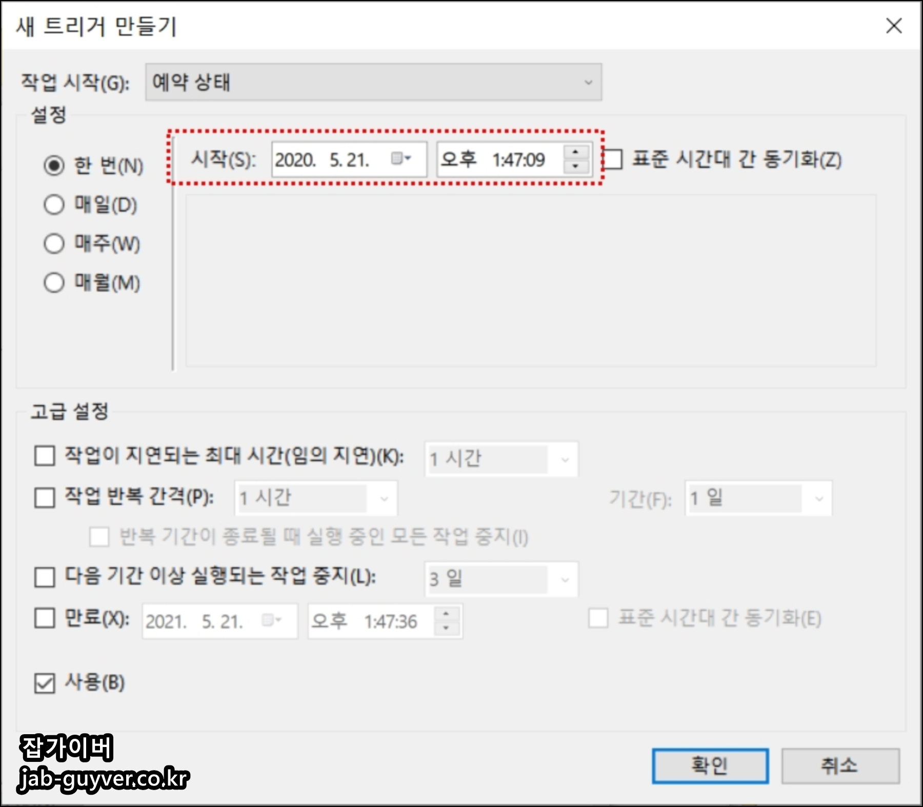 해당 예약 작업을 매일 할 것인지 매주 할 것인지 매월 할 것인지 설정합니다.