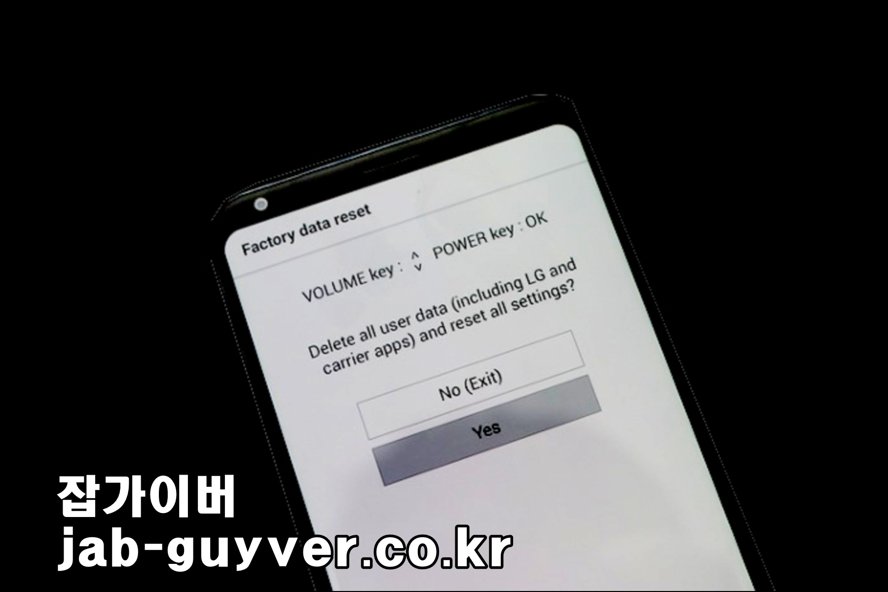 볼륨키 하단을 눌러 Yes를 전원 키로 선택하면 사용 중인 LG핸드폰을 강제로 초기화가 진행됩니다.
