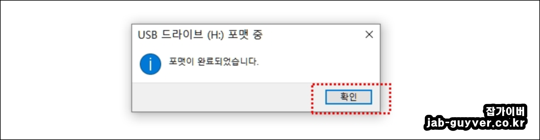 이상 USB의 모든 데이터가 포맷되어 초기화가 완료되었습니다.