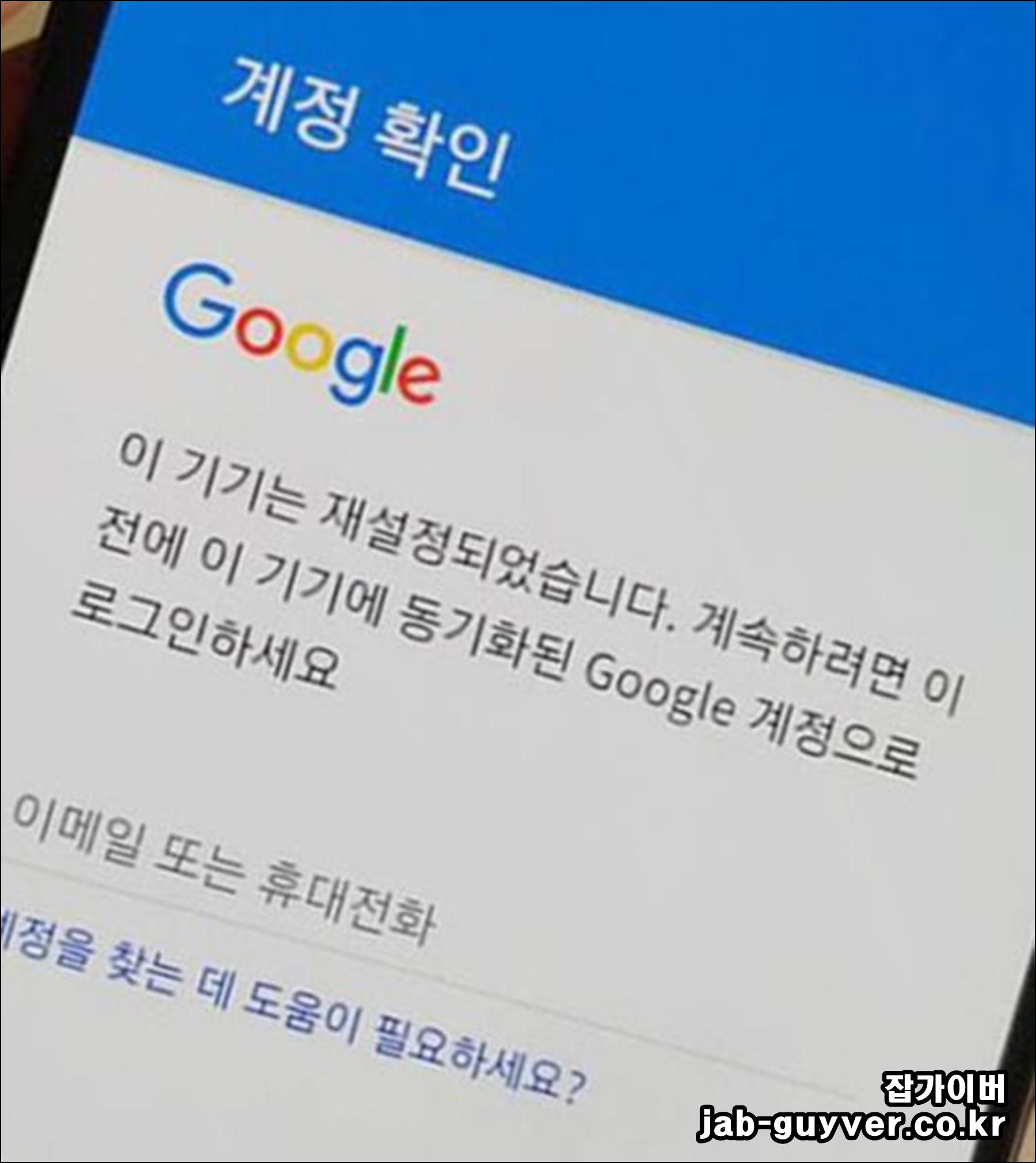 이 기기는 재설정되었습니다. 구글 계정 잠김 유심 변경 개발자옵션 핸드폰을 사용하면서 공장초기화를 진행해 모든 데이터를 삭제 한 다음 구글 계정에 로그인하고자 하는데 갑자기 구글