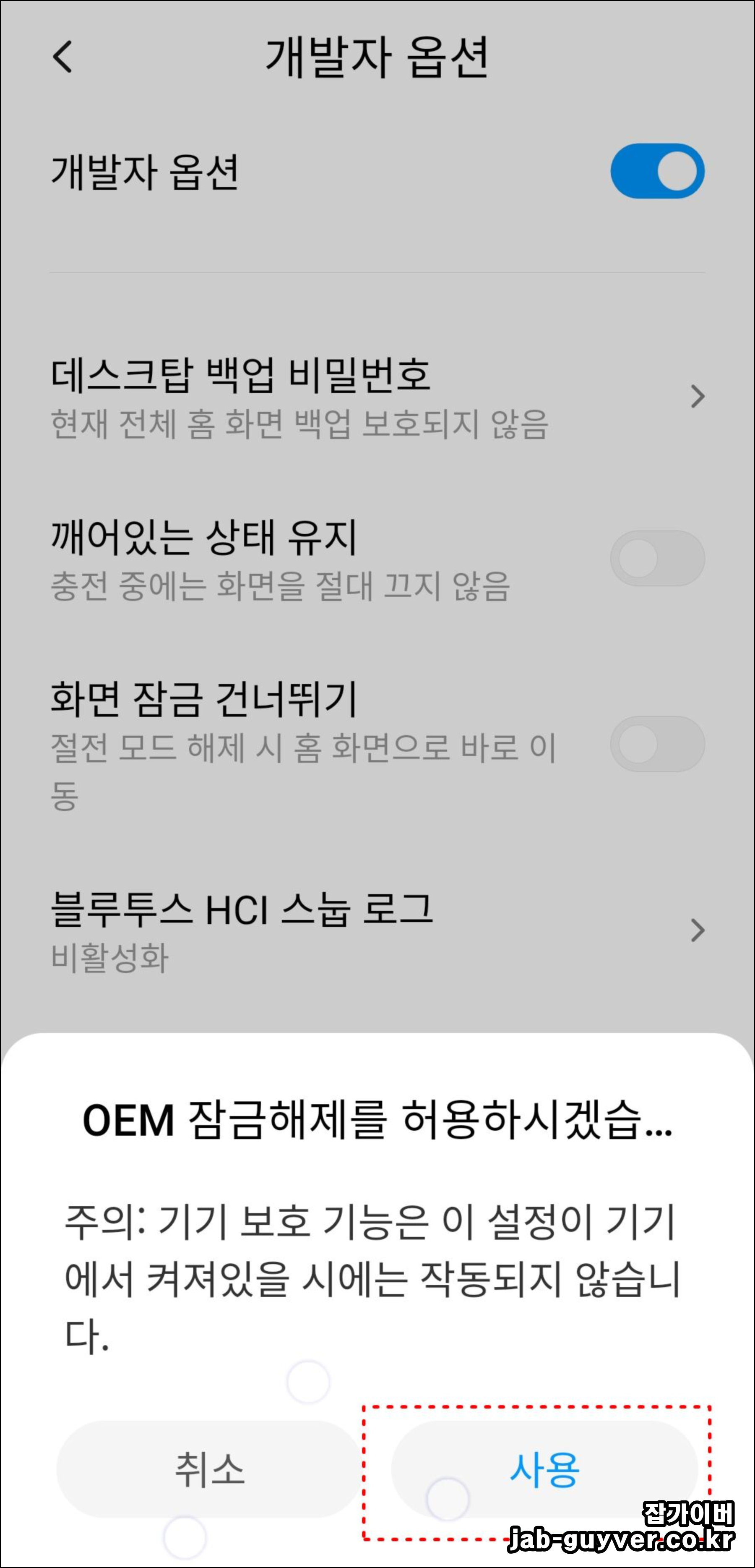 개발자모드 활성화 참고