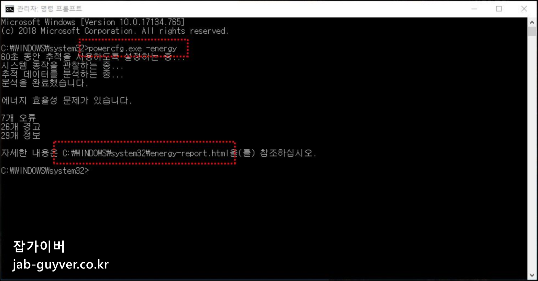 윈도우 탐색기에서 위 치치로 이동하게 되면 시스템 가용성 분석이 완료되어 에너지 효율에 문제가 있는지 확인할 수 있습니다.