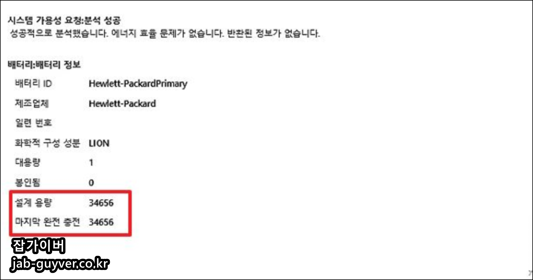 그리고 배터리의 설계 된 용량과 마지막으로 충전된 용량을 보게 되면 동일한 것을 볼 수 있습니다.
