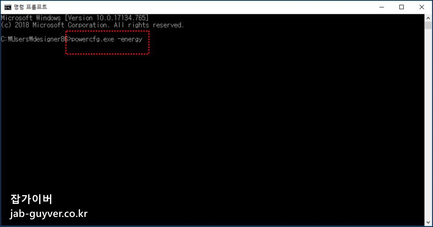 명령프롬프트 실행 후 아래 명령어를 복사해서입력합니다.