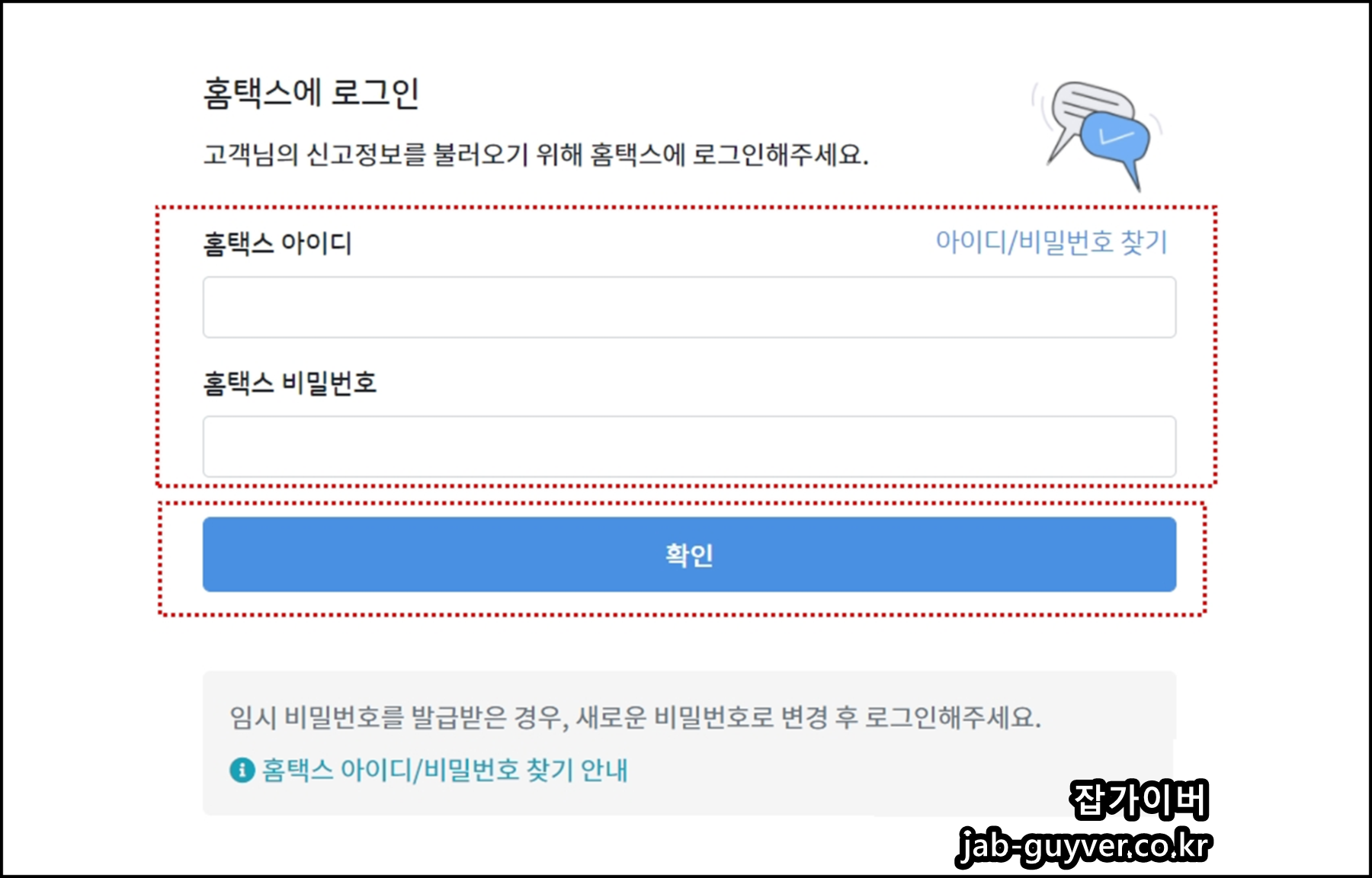 - 홈택스 ID, 비밀번호 입력 (공식 연동)
