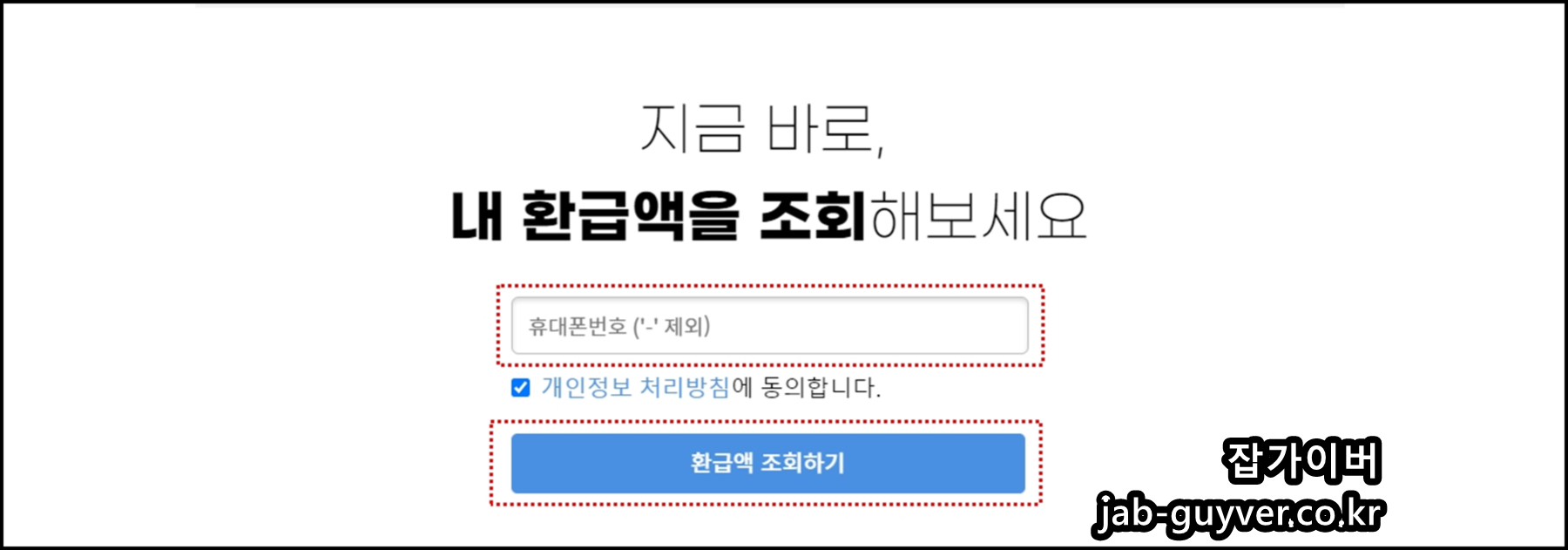 환급액을 조회하기 위해서는 자신의 휴대폰번호를 입력합니다.