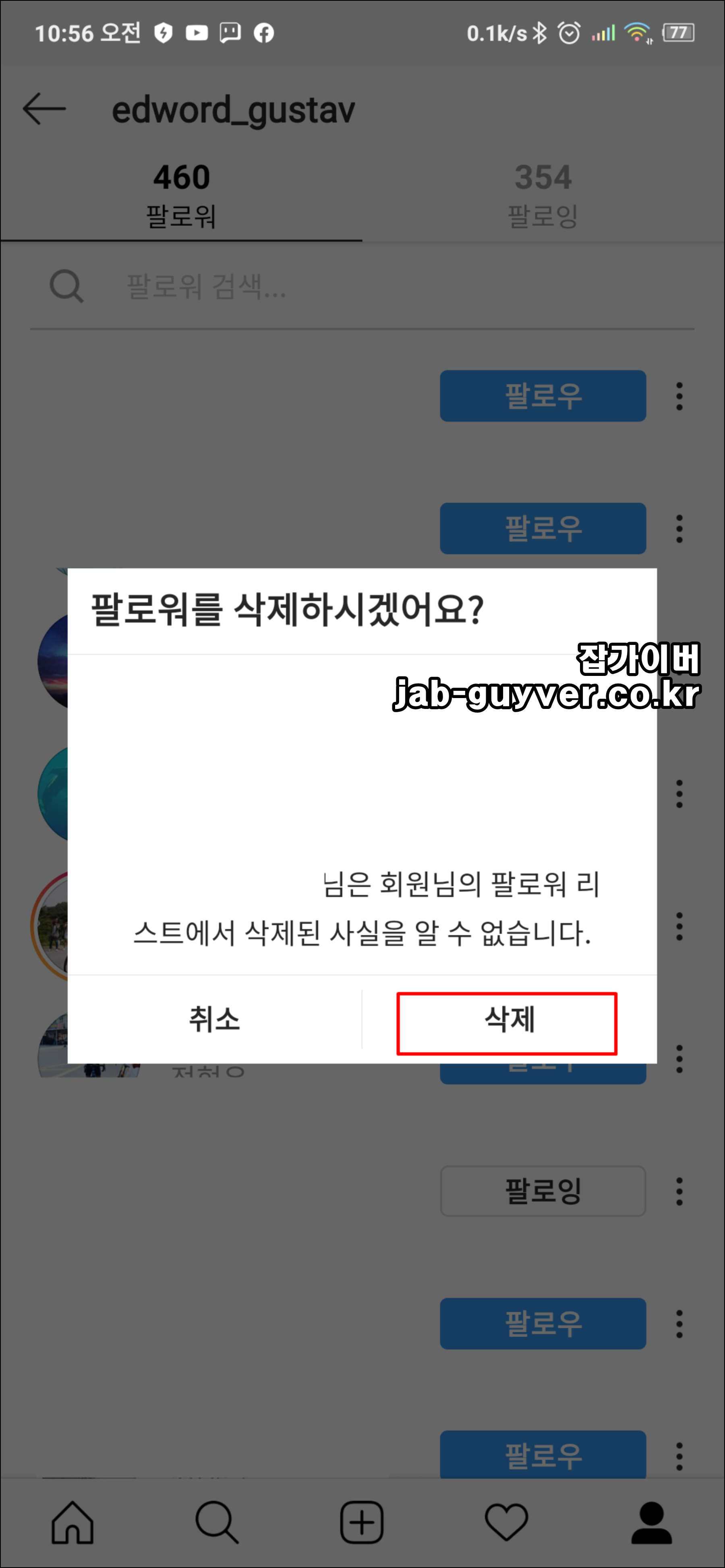 인스타 팔로우 팔로워 취소 삭제 방법 상대방 친구가 나를 삭제 차단 확인하는방법
