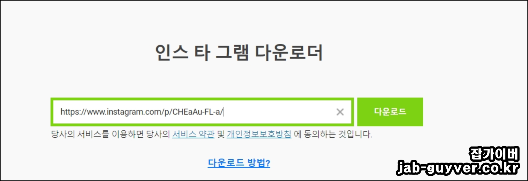앞서 복사한 인스타 주소를 입력창에 붙여 넣고 다운로드를 선택합니다.