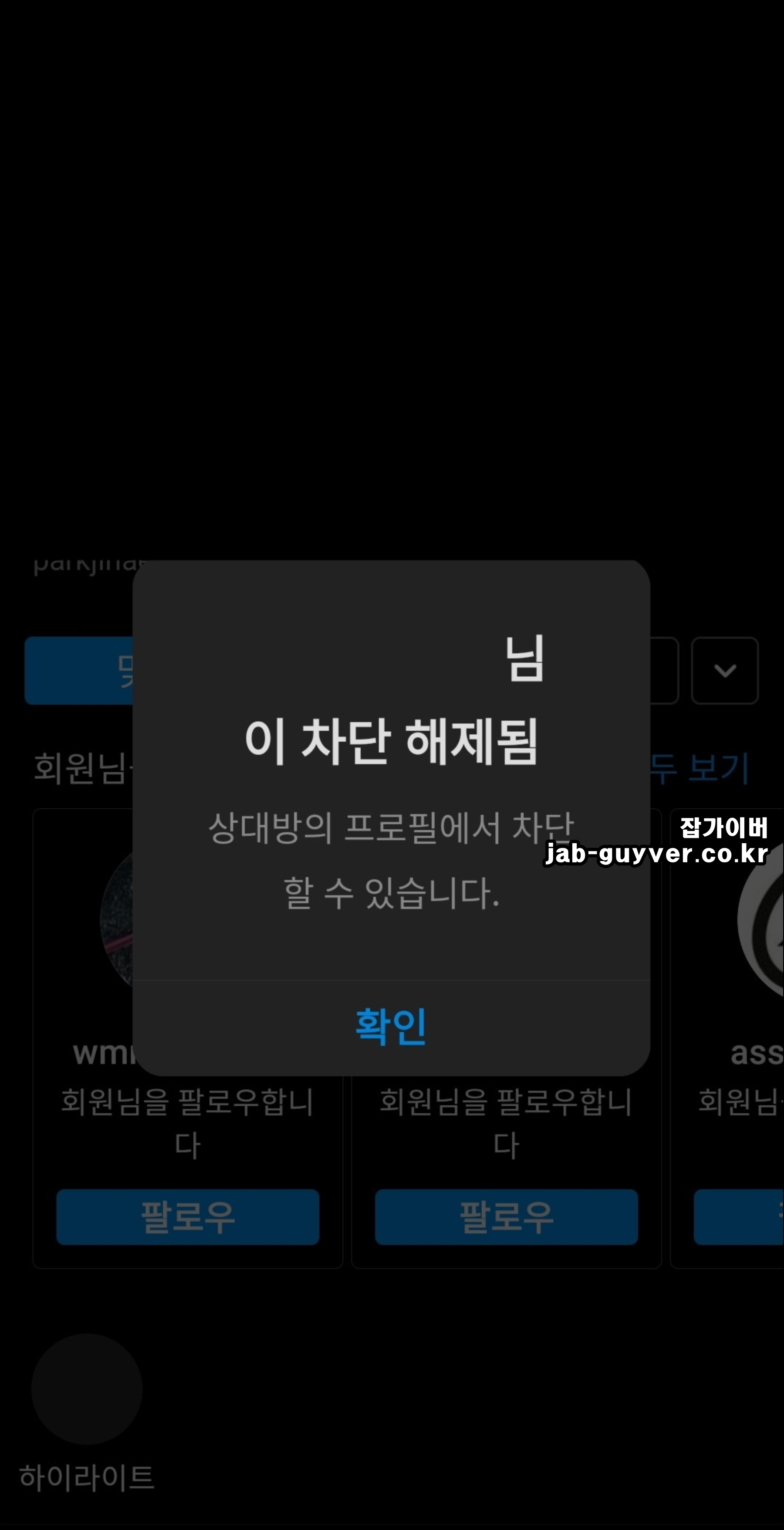 6. 인스타그램에서 차단을 해제하면 상대방에게 알림이 가나요?