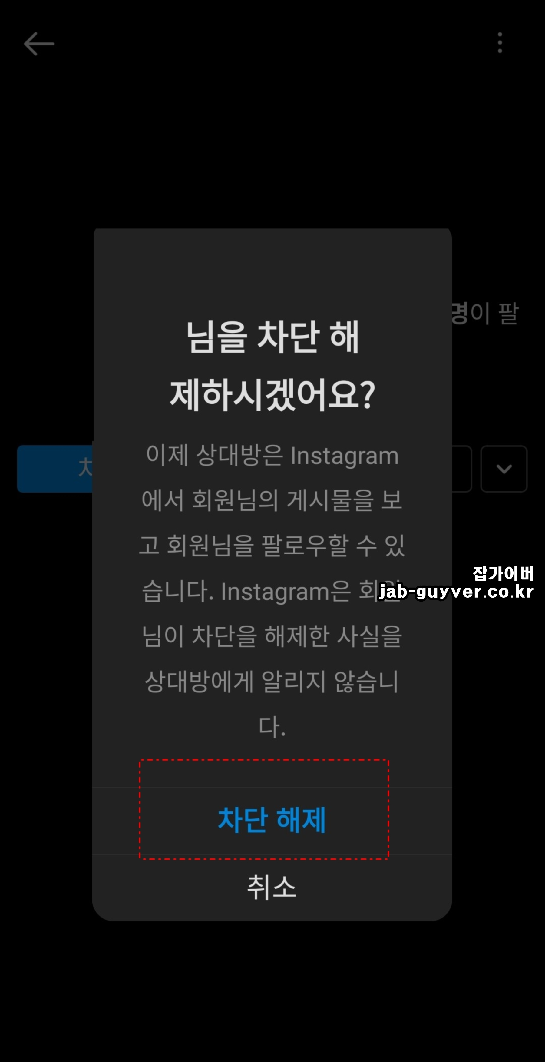 6. 인스타그램에서 차단을 해제하면 상대방에게 알림이 가나요?