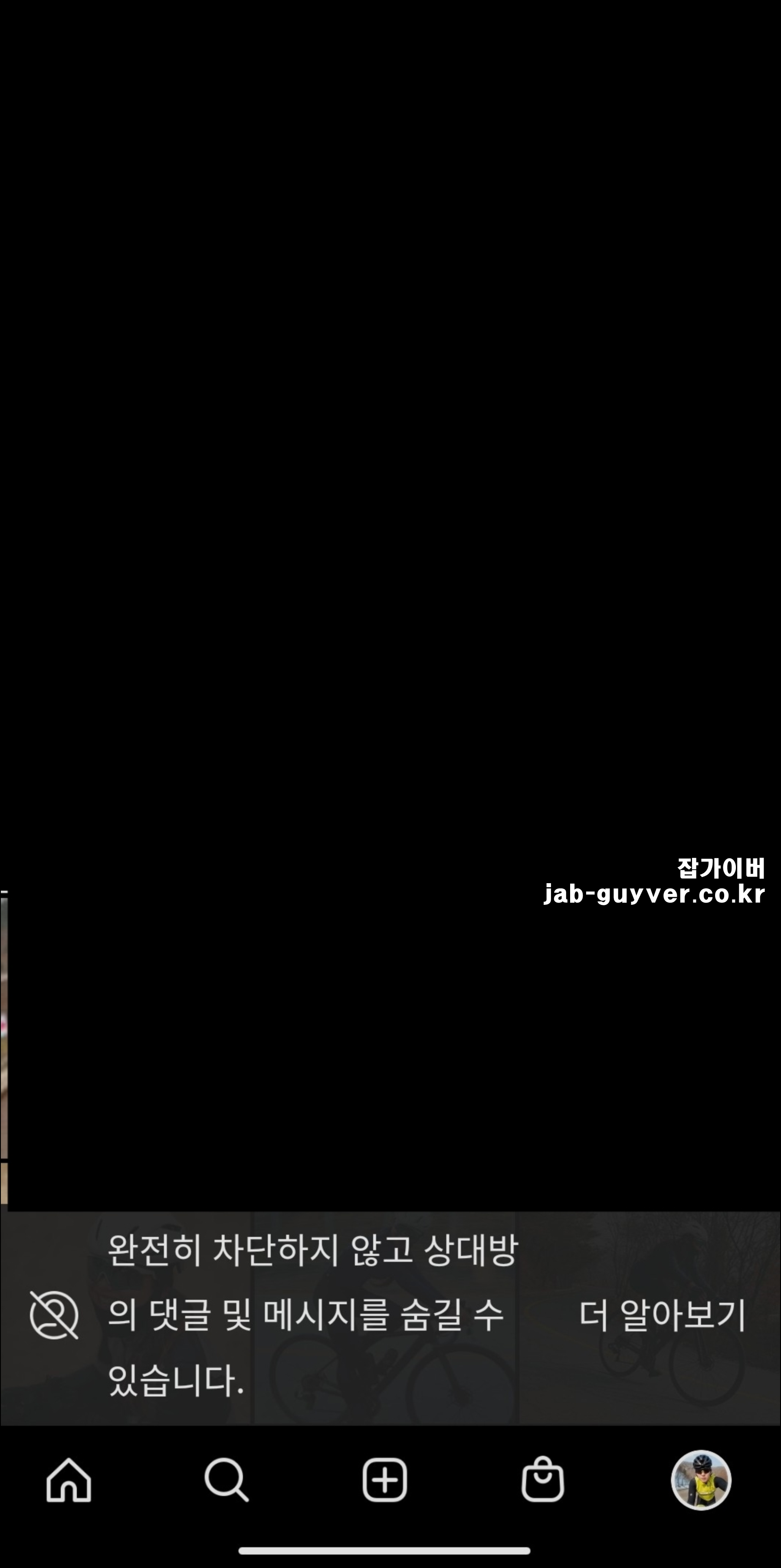 차단을 선택하게 해당 계정으로부터 완전히 차단하지 않고 상대방으로부터 댓글이라 메시지 등을 숨길 수 있습니다.