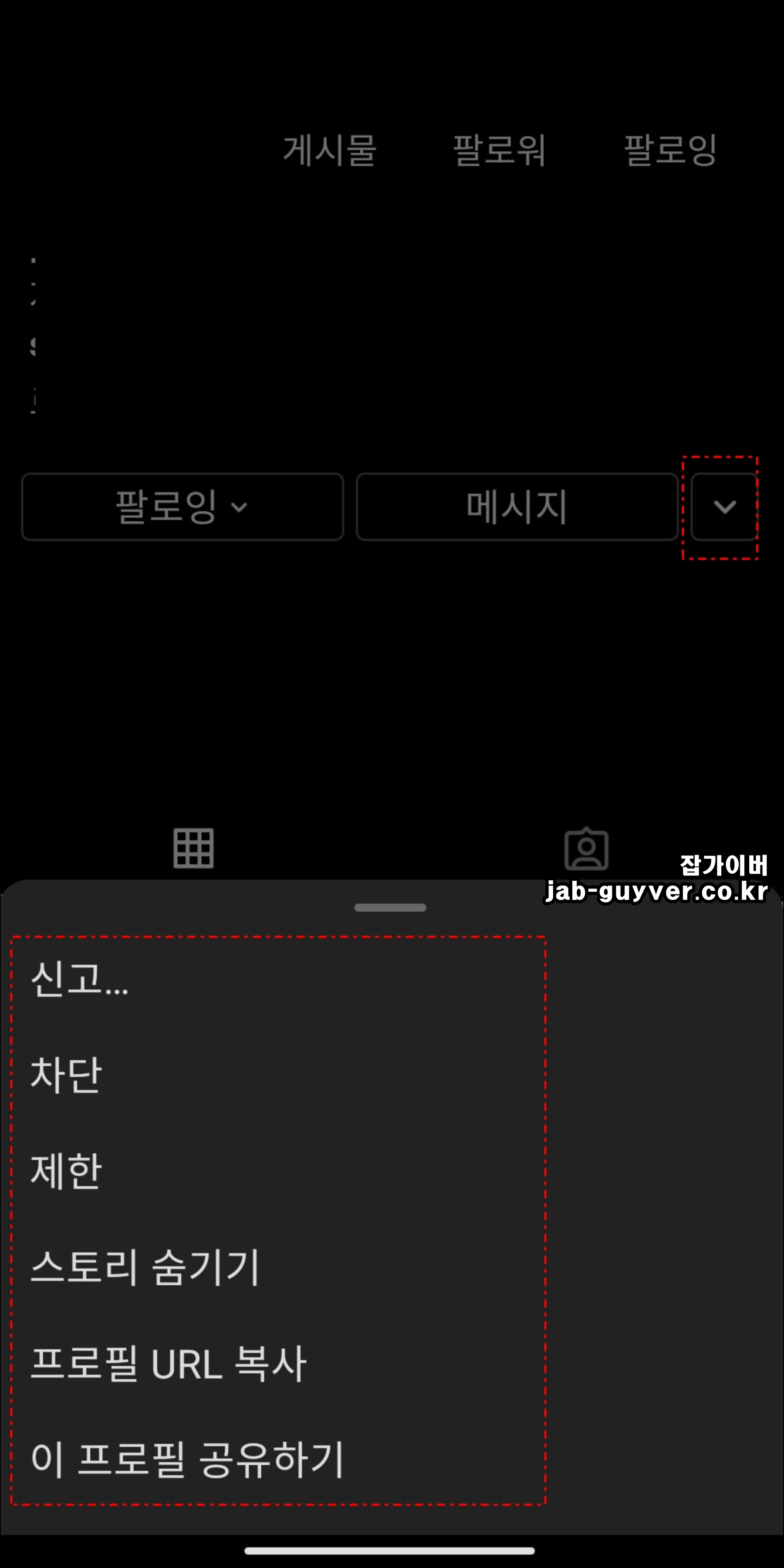 마음에 들지 않는 상대방 인스타 계정으로 들어갑니다.