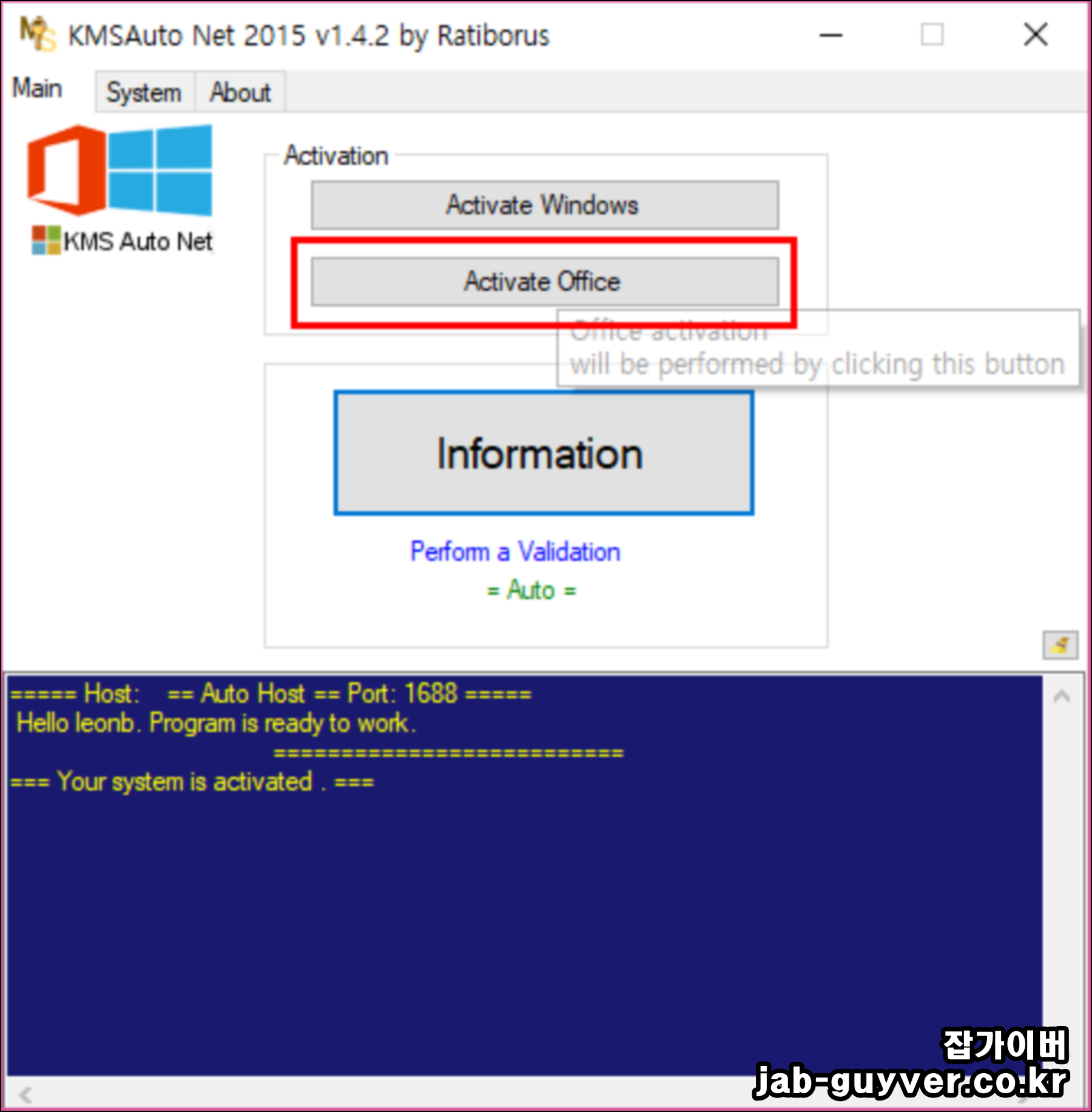 오피스의 정품인증은 KMSAuto Net.exe 파일로 진행합니다.