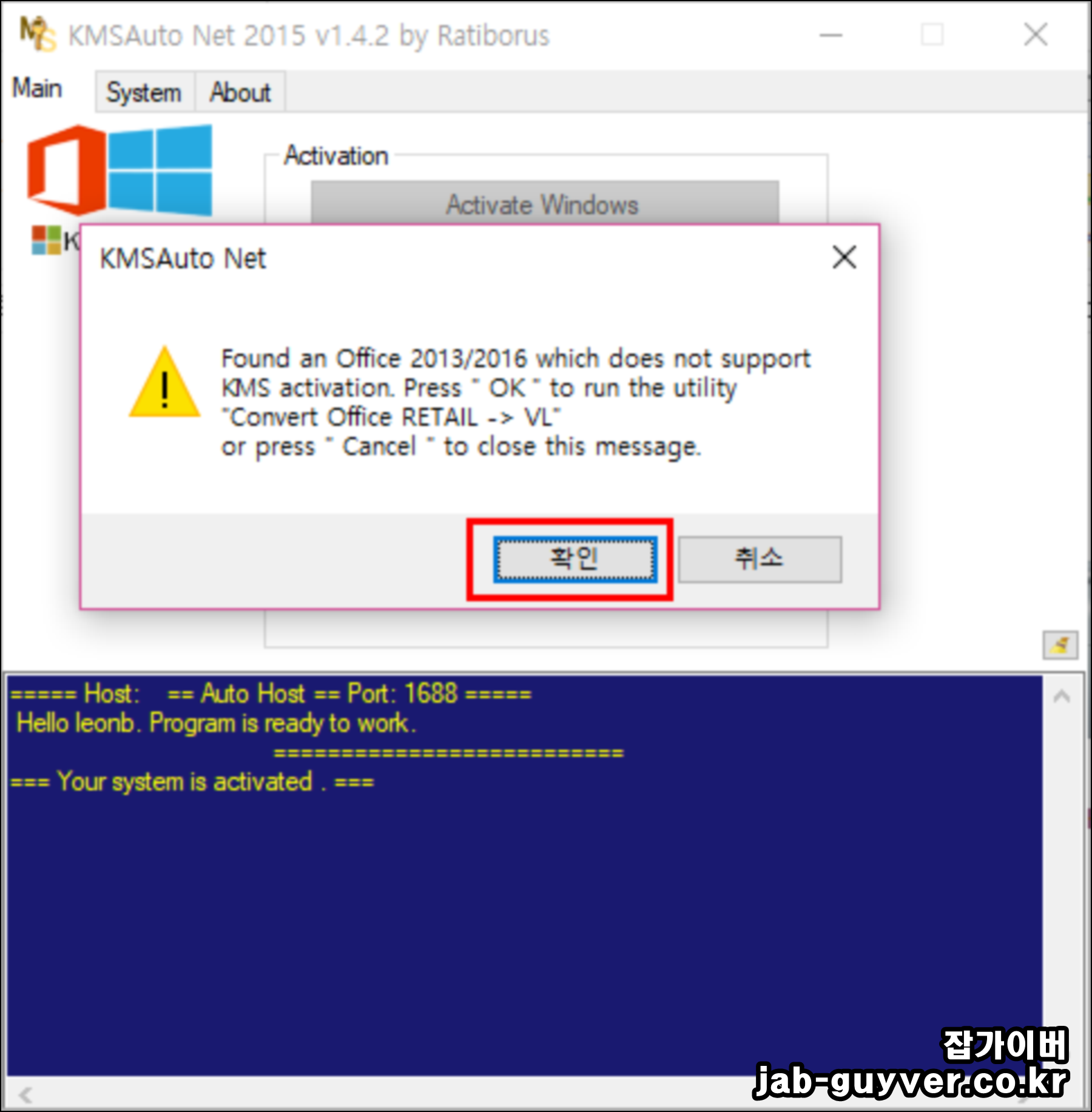 그럼 보는 것과 같이 알림 창이 표시되는데 자신에게 맞는 오피스 버전이 자동으로 활성화되니 버전을 선택하면 알아서 컨버팅이 진행됩니다.