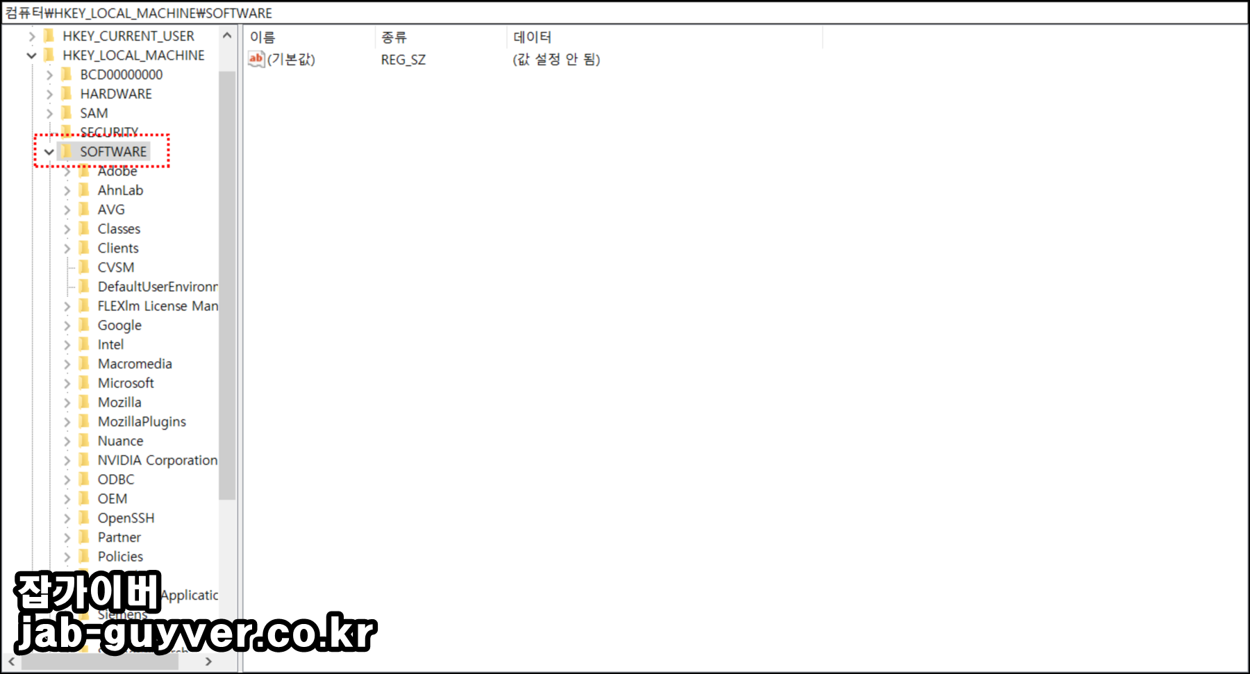 레지스트리 편집기가 열리면 HKEY_LOCAL_MACHINE 선택합니다.