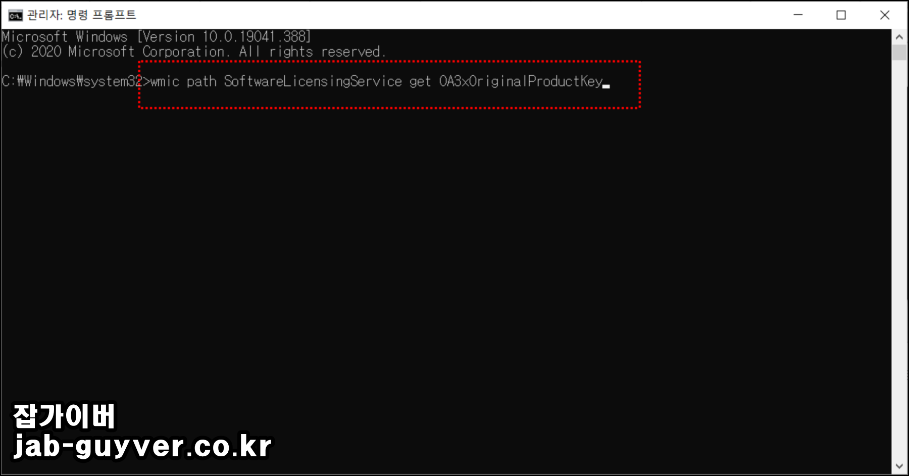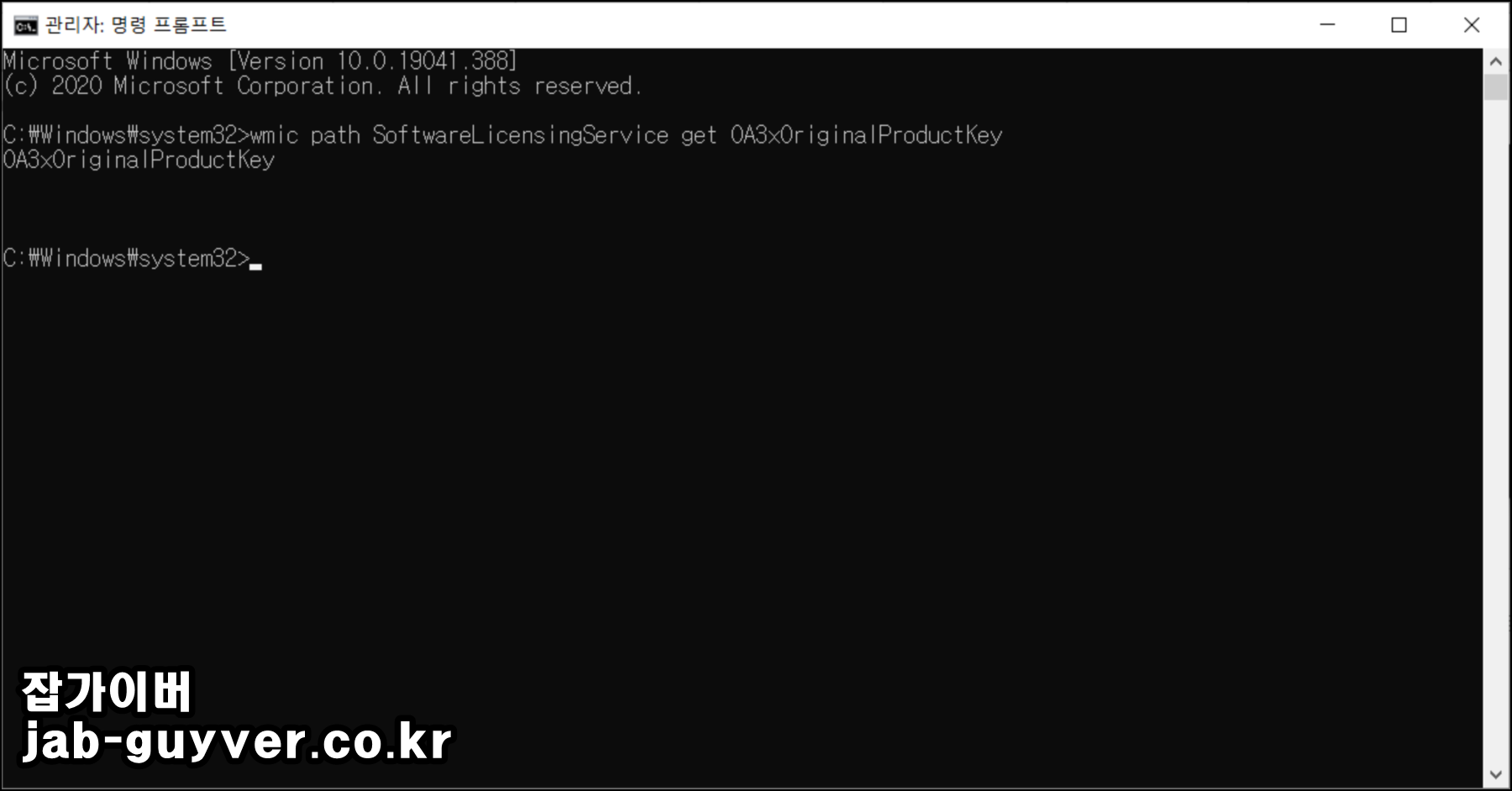 그럼 현재 사용하고 있는 윈도우의 시디얼 넘버가 나오게 되느데 일부 컴퓨터에서는 표시되지 않는 경우가 있습니다.
