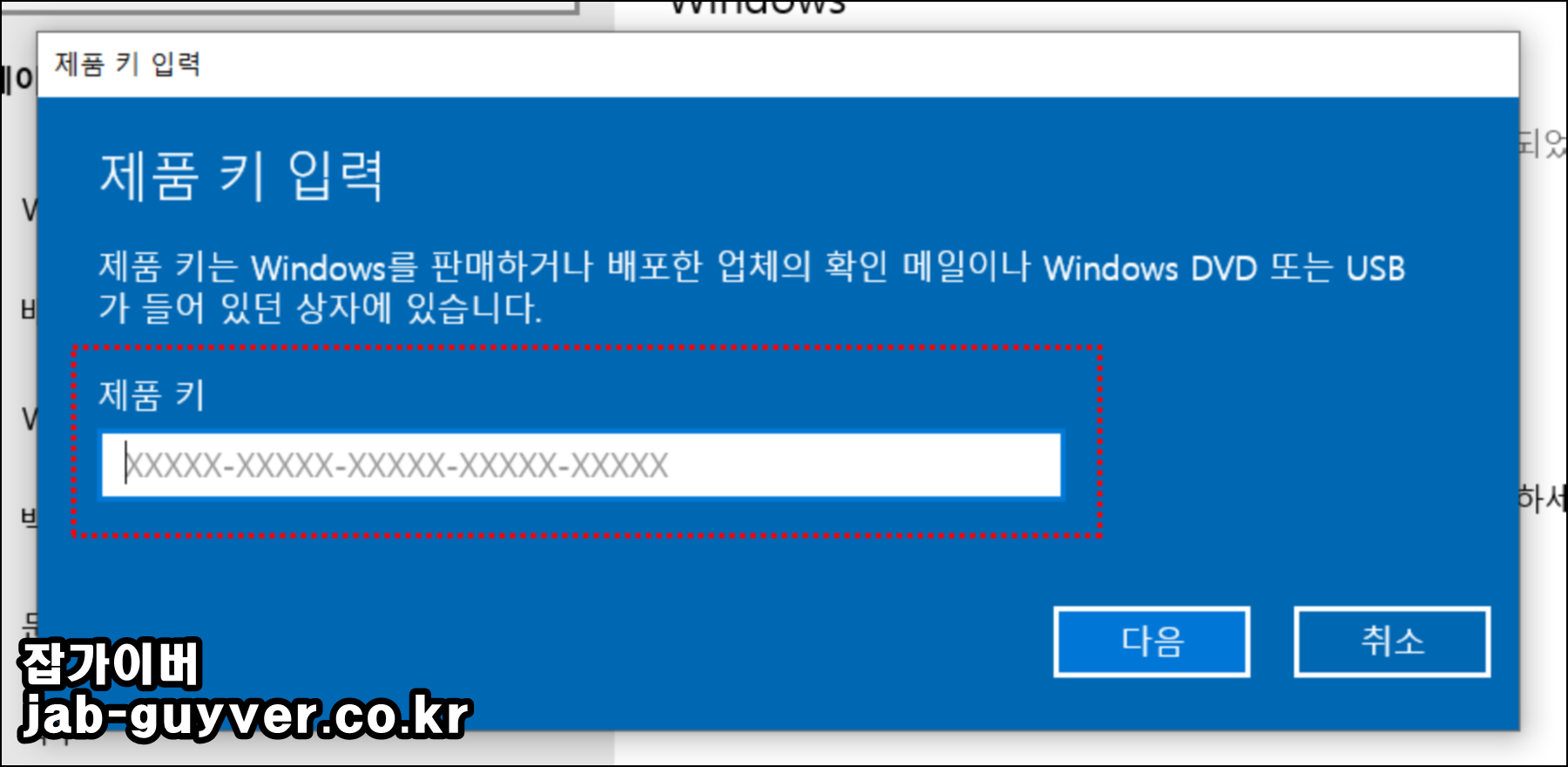 앞서 입력한 Windows의 제품 키를 입력하는 것으로 변경할 수 있습니다.
