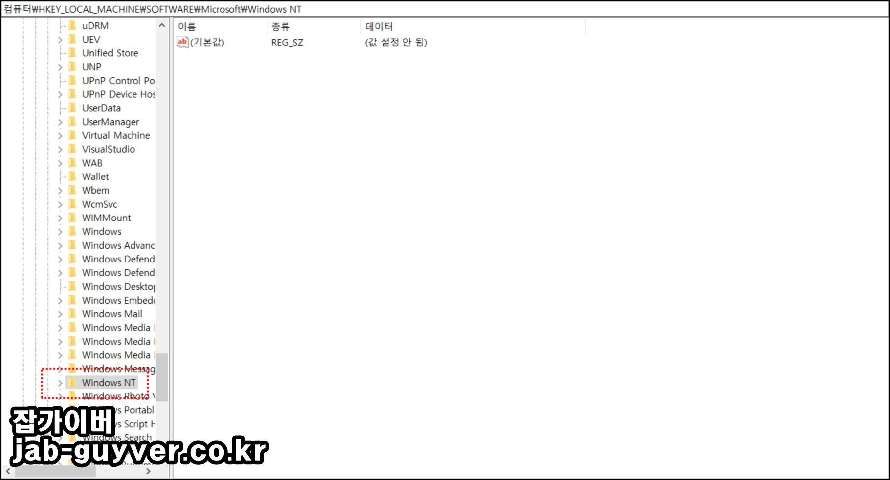 윈도우 검색창에 "레지스트리 편집기"를 입력 후 실행합니다.
