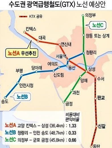 GTX A B C 노선 정차역 정보|환승과 통근 시간 절감 분석