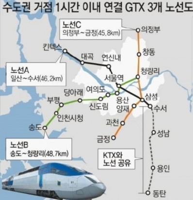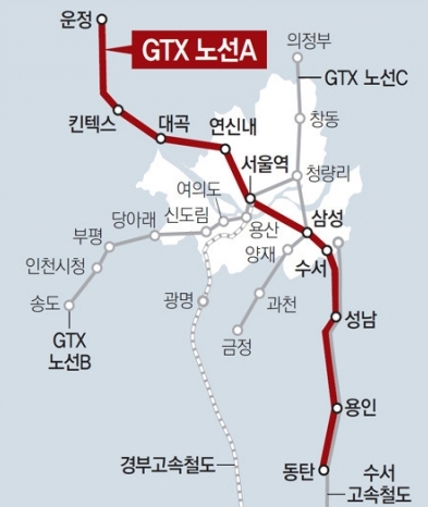 GTX A노선은 "파주"와 "동탄"을 잇는 기존의 지하철 여러 번 갈아타야지만 갈 수 있었던 외각지역의 단점이 크게 벗어날 것으로 보입니다.