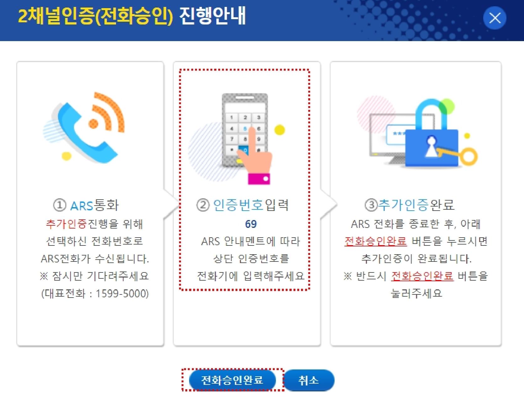 우선 2채널 인증을 통해 핸드폰으로 승인요청합니다.