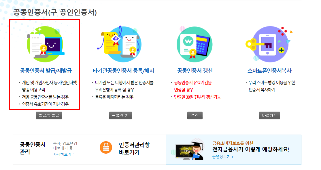 이번에 기존에 사용하던 공인인증서 "구 공인인증서"기간이 만료되면서 새롭게 출시한 금융인증서로 갱신 및 재발급 방법을 알아보겠습니다.