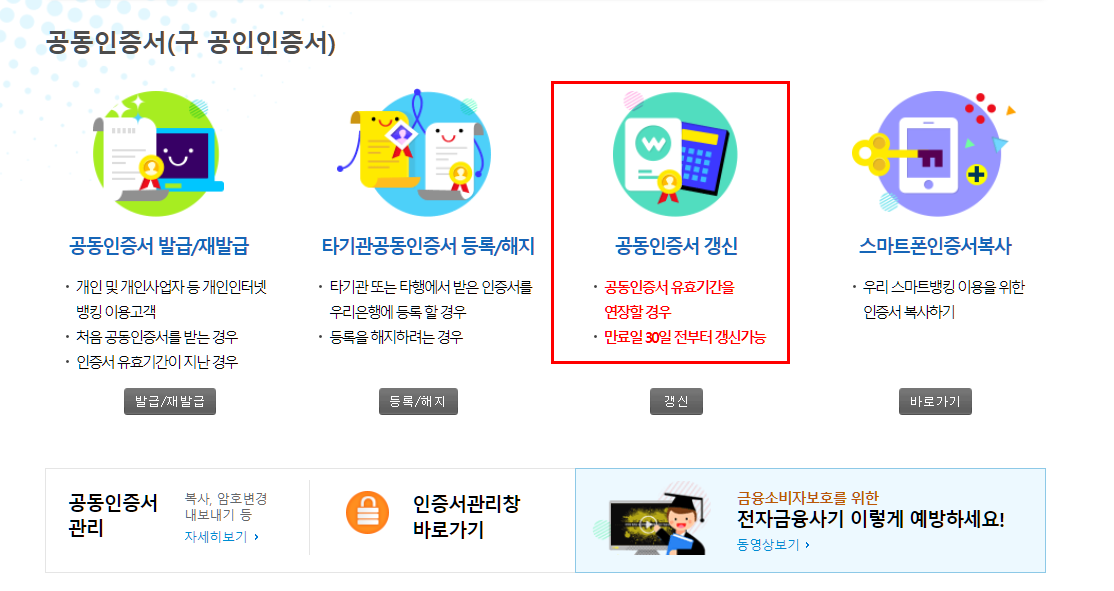 현재 우리은행 구 공동인증서 "공인인증서"에 대해 4가지 진행이 가능합니다.