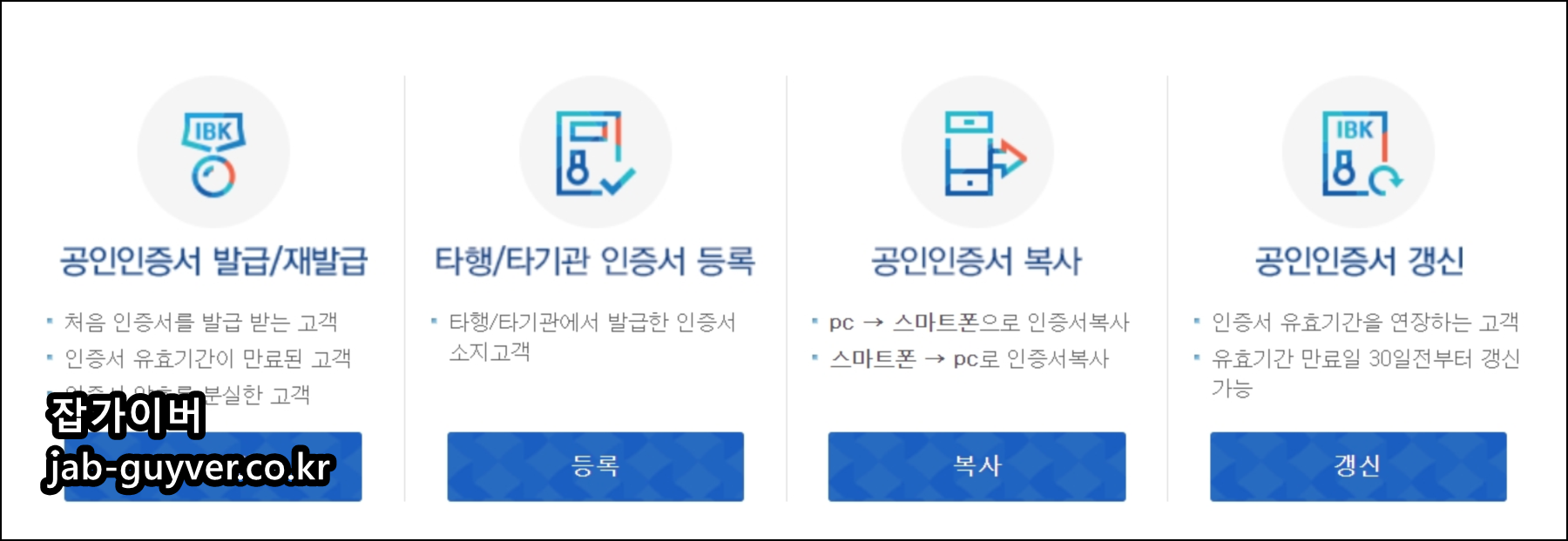 기업은행 금융인증서 발급 및 갱신방법