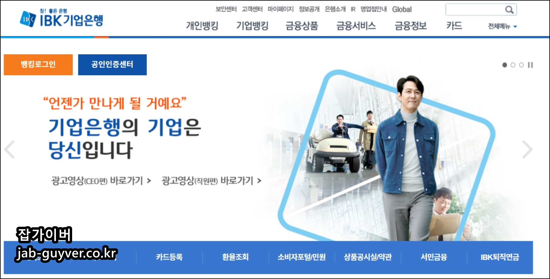 IBK 기업은행 홈페이지로 접속 후 인증센터를 선택합니다.