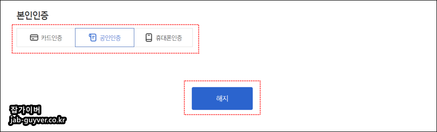 해지를 선택하면 본인확인이 필요합니다. 보통 아래 중 하나로 진행됩니다.